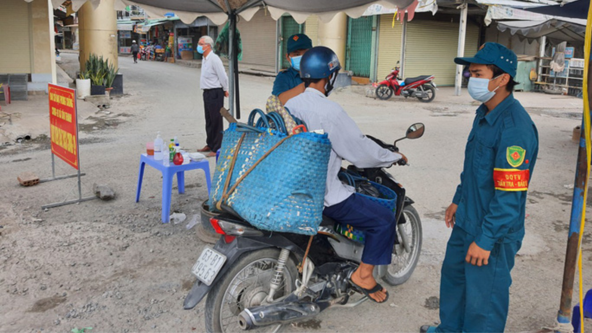 Một điểm kiểm soát dịch COVID-19 tại huyện Cai Lậy, Tiền Giang. |