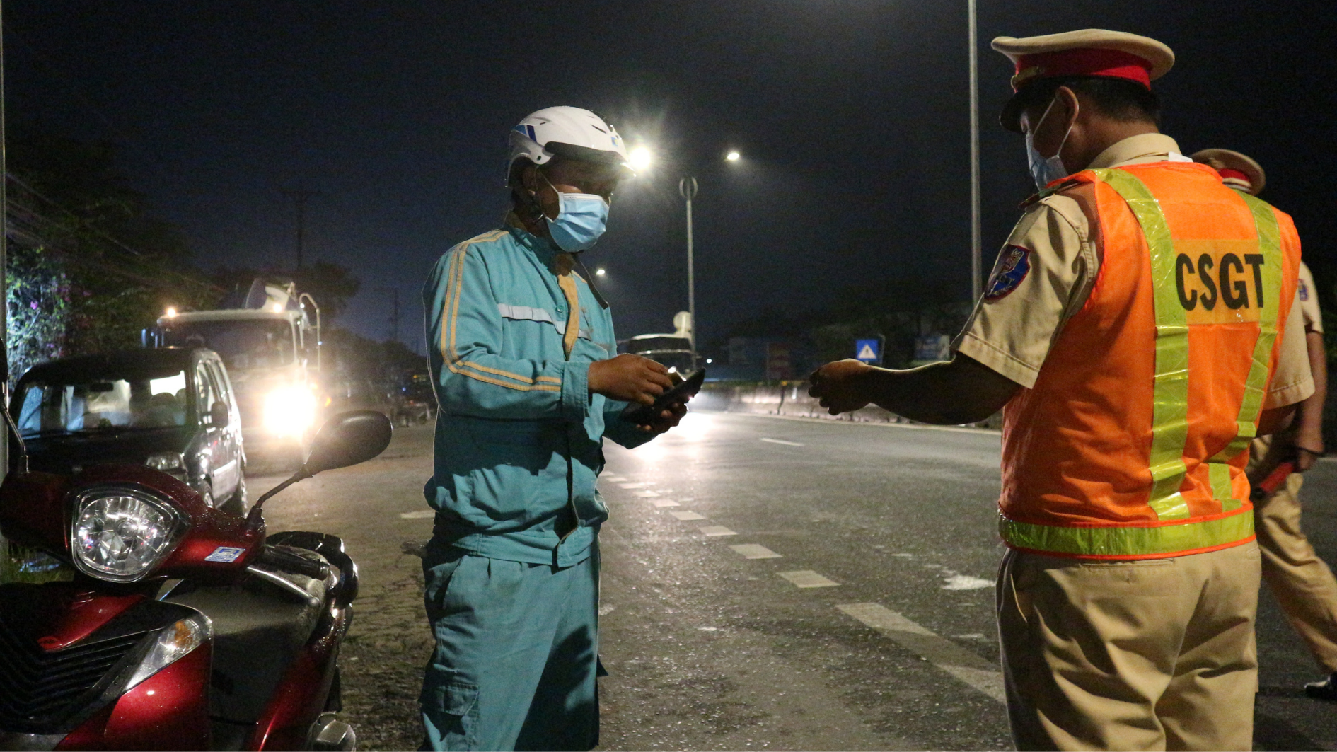 Ngày đầu thực hiện kiểm soát lực lượng CSGT chỉ nhắc nhở người dân. (Ảnh Lê Lập) |