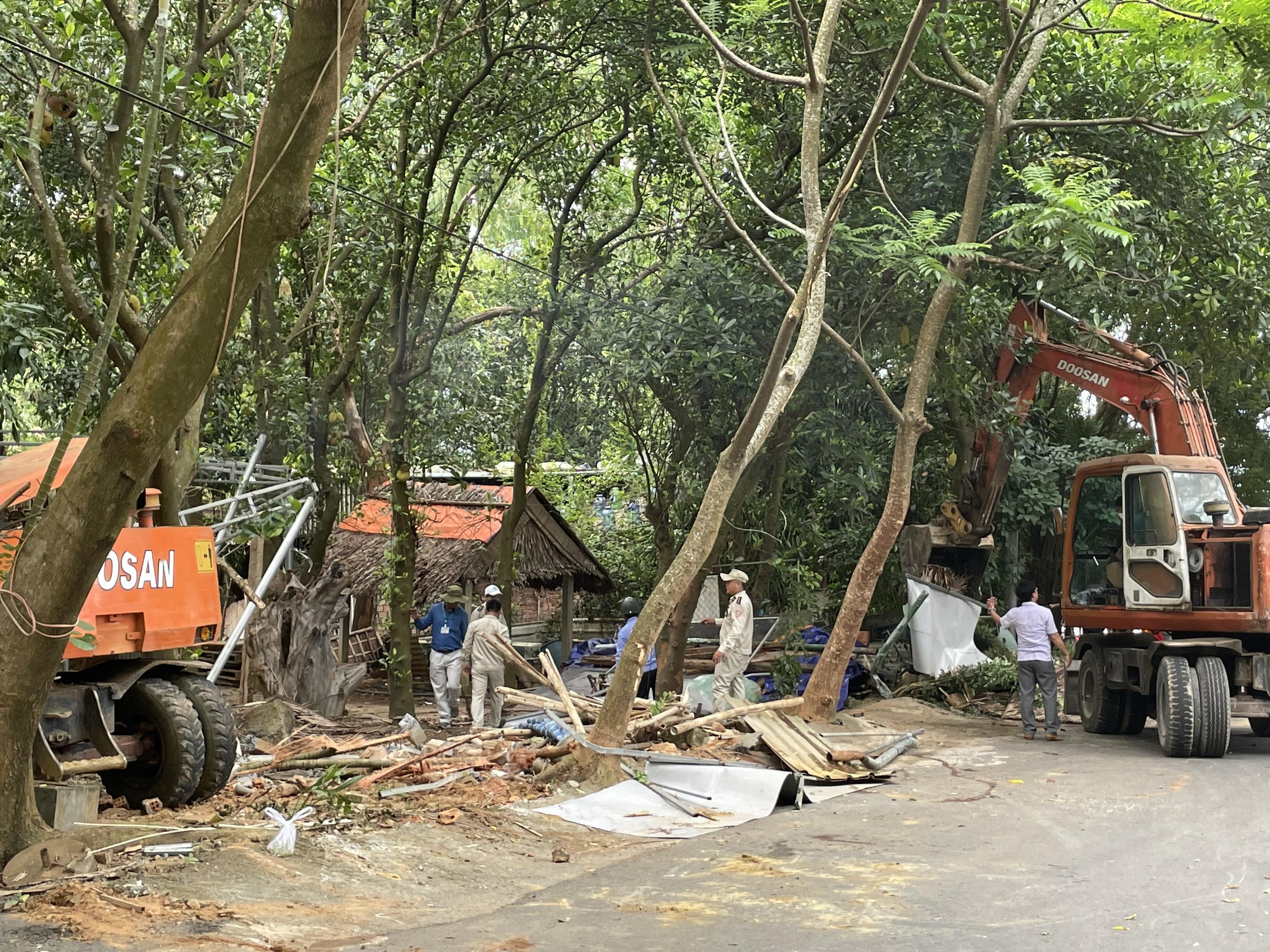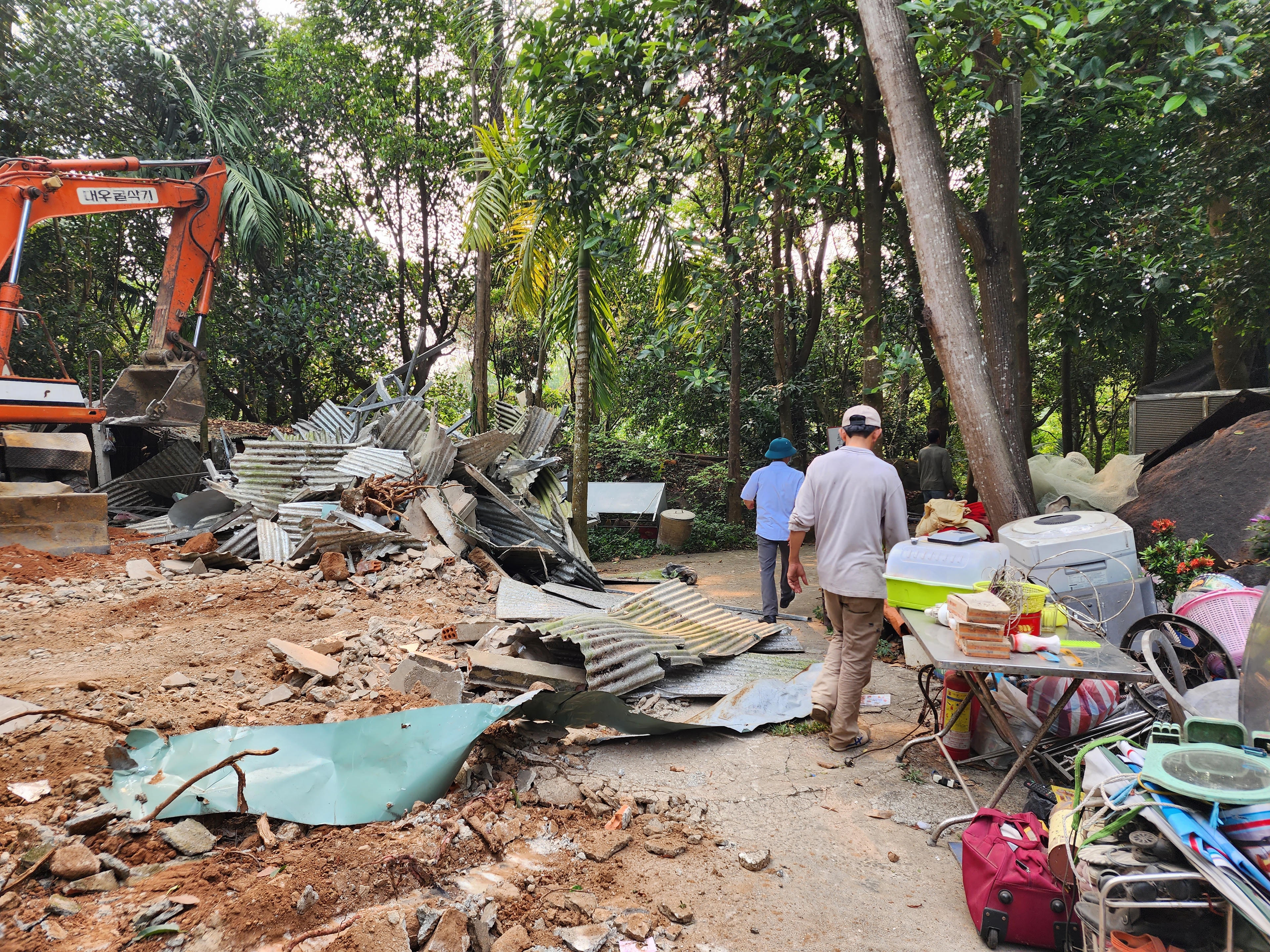 Các công trình được xây kiên cố nên phải huy động máy xúc để tháo dỡ. |