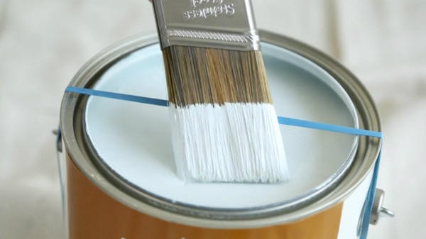 Bạn có thể dễ dàng gạt bớt lượng sơn không cần dùng với mẹo nhỏ cùng sợ dây chun. |
