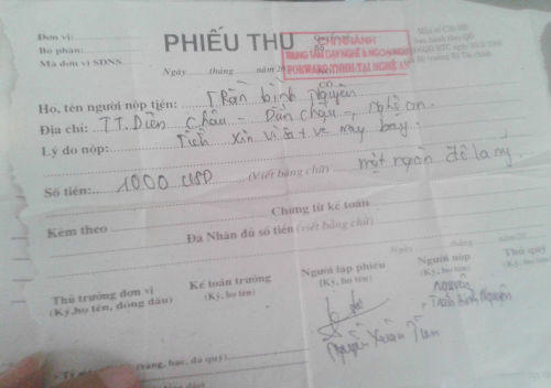 Còn vị Giám đốc Trung tâm Forward Nghệ An rất ngạc nhiên về việc xuất hiện hai phiếu thu của đơn vị mình: “Phiếu thu của trung tâm chỉ được cấp cho kế toán, ông Nguyễn Xuân Tiến không phải là người của trung tâm mà sử dụng phiếu thu trên là sai”. Kiểm tra hồ sơ học viên Trần Bình Nguyên thì ông Phúc cho biết không có tên trong danh sách đào tạo.