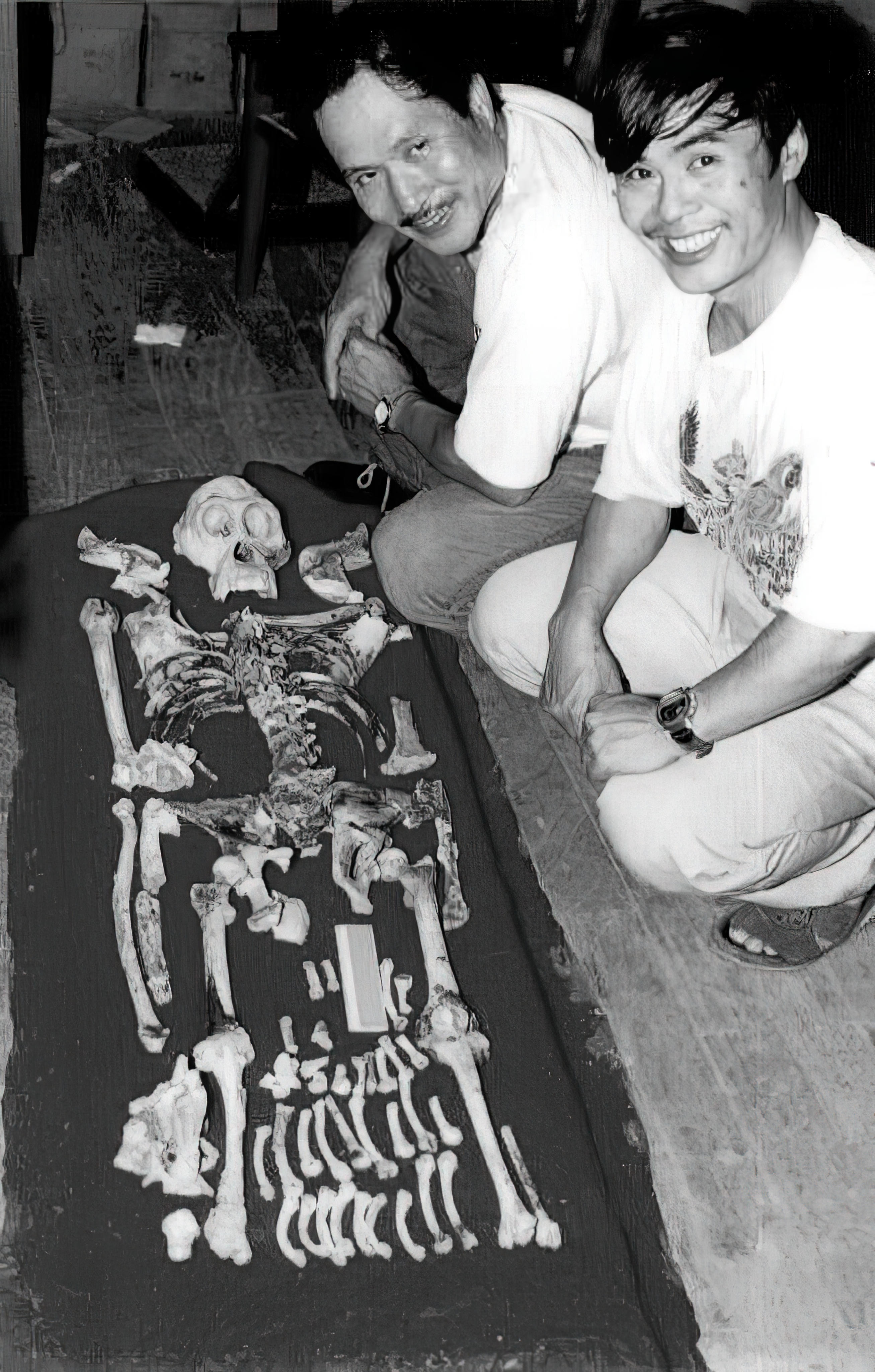 | Khám phá chấn động thế giới của TS Vũ Thế Long với bộ xương hóa thạch nguyên vẹn của đười ươi cổ đại tại Lương Sơn (Hòa Bình, khoảng năm 1990). Ảnh: Đoàn Bắc |