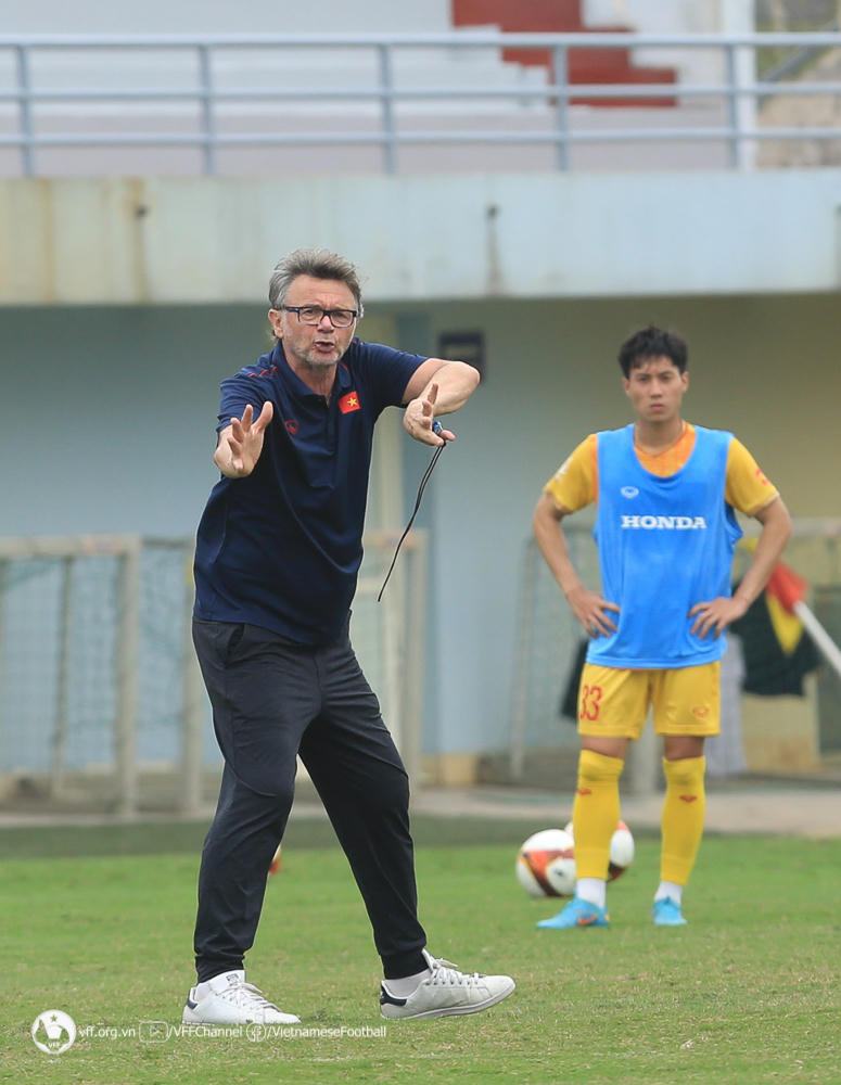 HLV Philippe Troussier, liên tục đốc thúc các cầu thủ phải di chuyển thật nhanh, phối hợp ít chạm (ảnh VFF) |