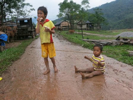Giữa trưa, trên con đường đất đỏ nhầy nhụa vào bản Ka Ai, xã Dân Hóa, hơn hai mươi đứa trẻ đứng chơi trên ngã ba, chưa đến mười đứa đi dép và không em nào mặc một chiếc áo khoác ấm cho đúng nghĩa. Khí trời lúc này chỉ khoảng 14oC, rét như cắt được vào thịt người…