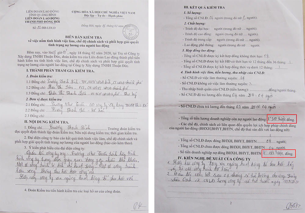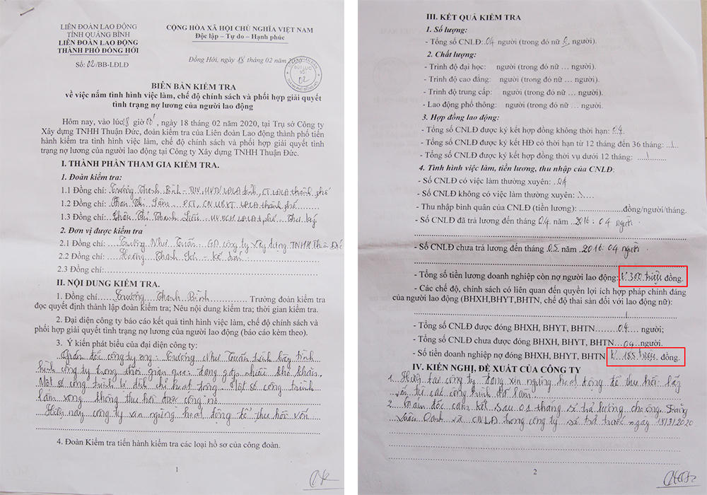 Đồng thời, bài viết cũng phản ánh những nghi vấn việc Công ty TNHH xây dựng Thuận Đức còn nợ lương, nợ đóng tiền các loại bảo hiểm cho người lao động làm việc tại Công ty hàng trăm triệu đồng.