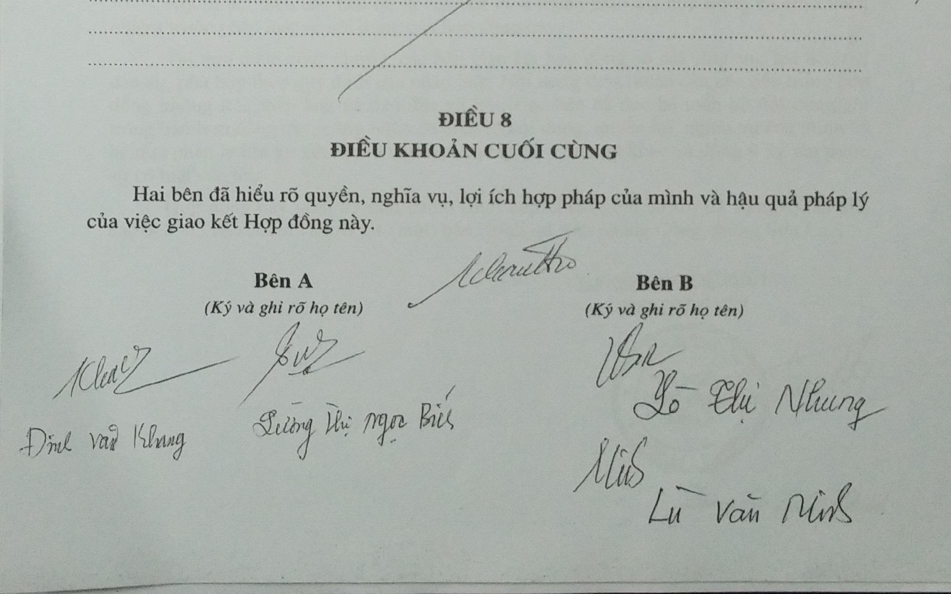 Cần khẳng định lại, vào 02/2011, bai bên chỉ thỏa thuận bằng miệng về việc mua bán thửa đất, cùng tài sản, chỉ khi nào thanh toán hết sẽ thực hiện ký kết hợp đồng chuyển nhượng theo quy định của pháp luật. Nhưng như đã nêu trên, bà Nhung đã giả mạo chữ ký của ông Khang, lừa dối công chứng viên công chứng hợp đồng và các làm các thủ tục chuyển quyền sử dụng đất khác.