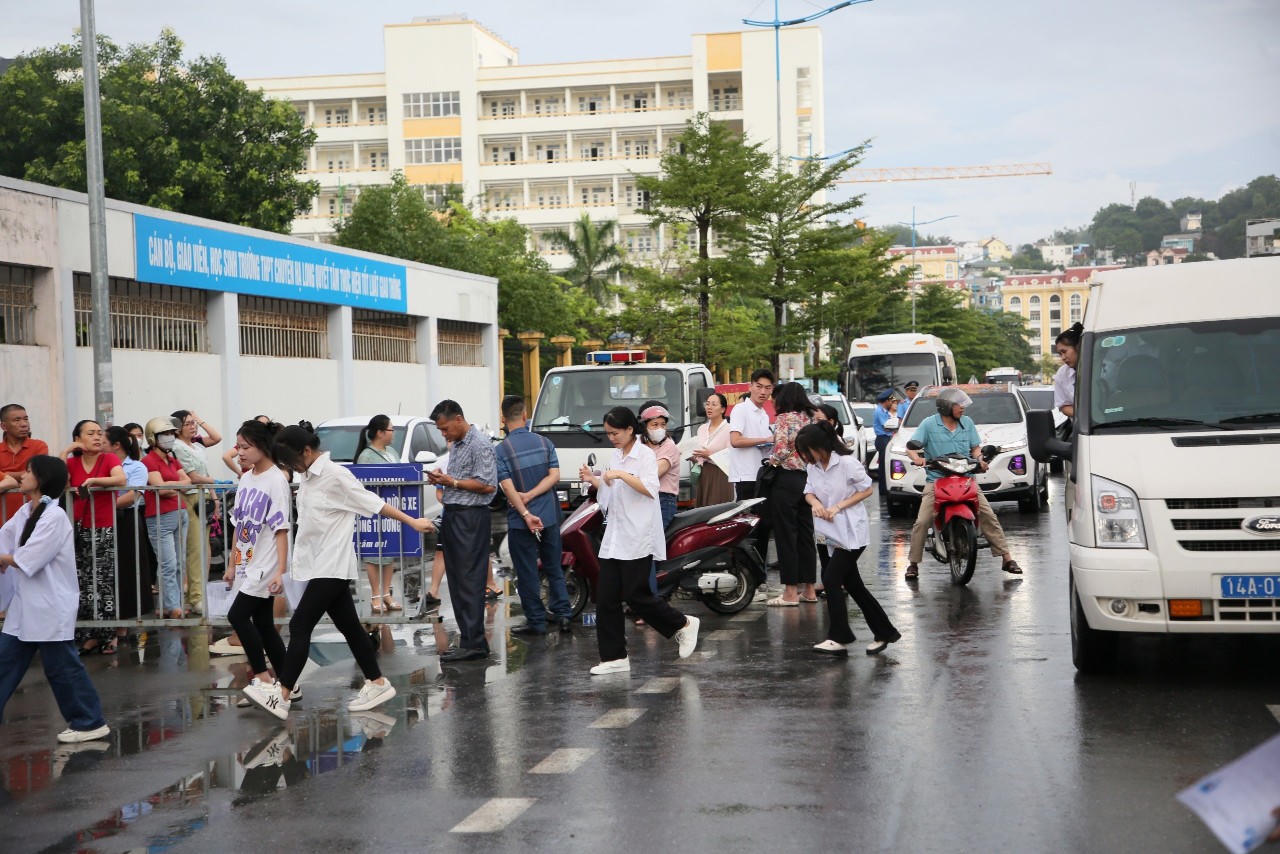 Tại tỉnh Quảng Ninh có 18.000 thí sinh đăng ký dự thi tốt nghiệp THPT, tăng 1.976 thí sinh so với năm trước. Tỉnh đã bố trí 37 điểm thi với 785 phòng thi chính thức và 89 phòng thi dự phòng. Các hội đồng coi thi được đặt tại các cơ sở giáo dục đáp ứng được các yêu cầu tổ chức thi, đảm bảo đúng quy chế thi, thuận tiện cho thí sinh và an toàn cho công tác tổ chức của kỳ thi. Ngay từ sáng sớm các thí sinh đã tới các điểm thi (Ảnh: Báo Quảng Ninh).