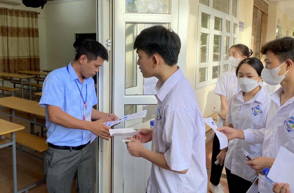 Bên trong các điểm thi, cán bộ làm công tác coi thi thực hiện đúng chức trách, nhiệm vụ được phân công; hướng dẫn chi tiết Quy chế thi, quy định của kỳ thi cho thí sinh; động viên, tạo tâm lý thoải mái cho thí sinh hoàn thành tốt bài thi.