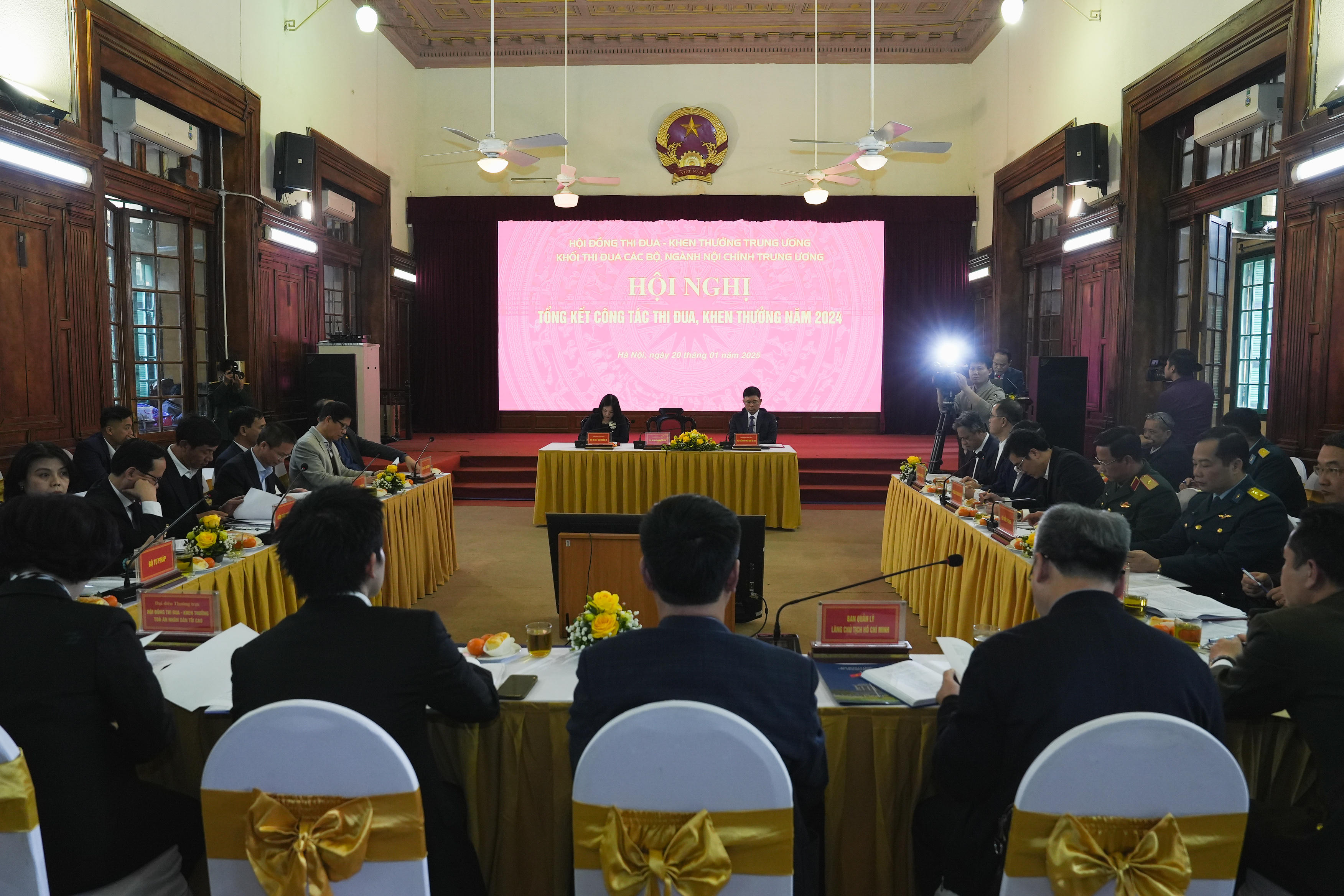Nhân dịp này, các đại biểu đã thống nhất đề nghị tặng Cờ thi đua của Chính phủ cho Toà án nhân dân tối cao và Bộ Công an; tặng Bằng khen của Thủ tướng Chính phủ cho Bộ Quốc phòng và Ban Quản lý Lăng Chủ tịch Hồ Chí Minh; đồng thời, bầu chọn và bàn giao nhiệm vụ cho Khối trưởng – Khối phó Khối thi đua năm 2025. Theo đó, Viện Kiểm sát nhân dân tối cao là Khối trưởng, Thanh tra Chính phủ là Khối phó Khối thi đua năm 2025.