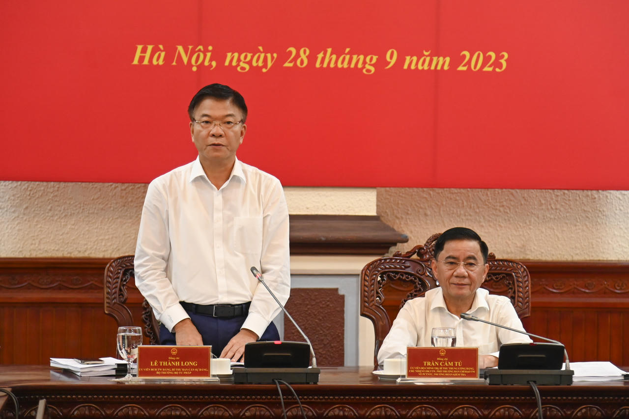 Hội nghị do đồng chí Trần Cẩm Tú, Ủy viên Bộ Chính trị, Bí thư Trung ương Đảng, Chủ nhiệm Ủy ban Kiểm tra Trung ương, Phó Trưởng ban chỉ đạo Trung ương về phòng, chống tham nhũng, Trưởng đoàn kiểm tra và đồng chí Lê Thành Long, Ủy viên Ban chấp hành Trung ương Đảng, Bí thư Ban Cán sự Đảng, Bộ trưởng Bộ Tư pháp chủ trì. Tham dự Hội nghị, về phía Bộ Tư pháp có các Thứ trưởng: Nguyễn Khánh Ngọc, Nguyễn Thanh Tịnh, Mai Lương Khôi; đồng chí Nguyễn Kim Tinh, Phó Bí thư Thường trực Đảng Ủy Bộ và đại diện lãnh đạo các đơn vị thuộc Bộ.