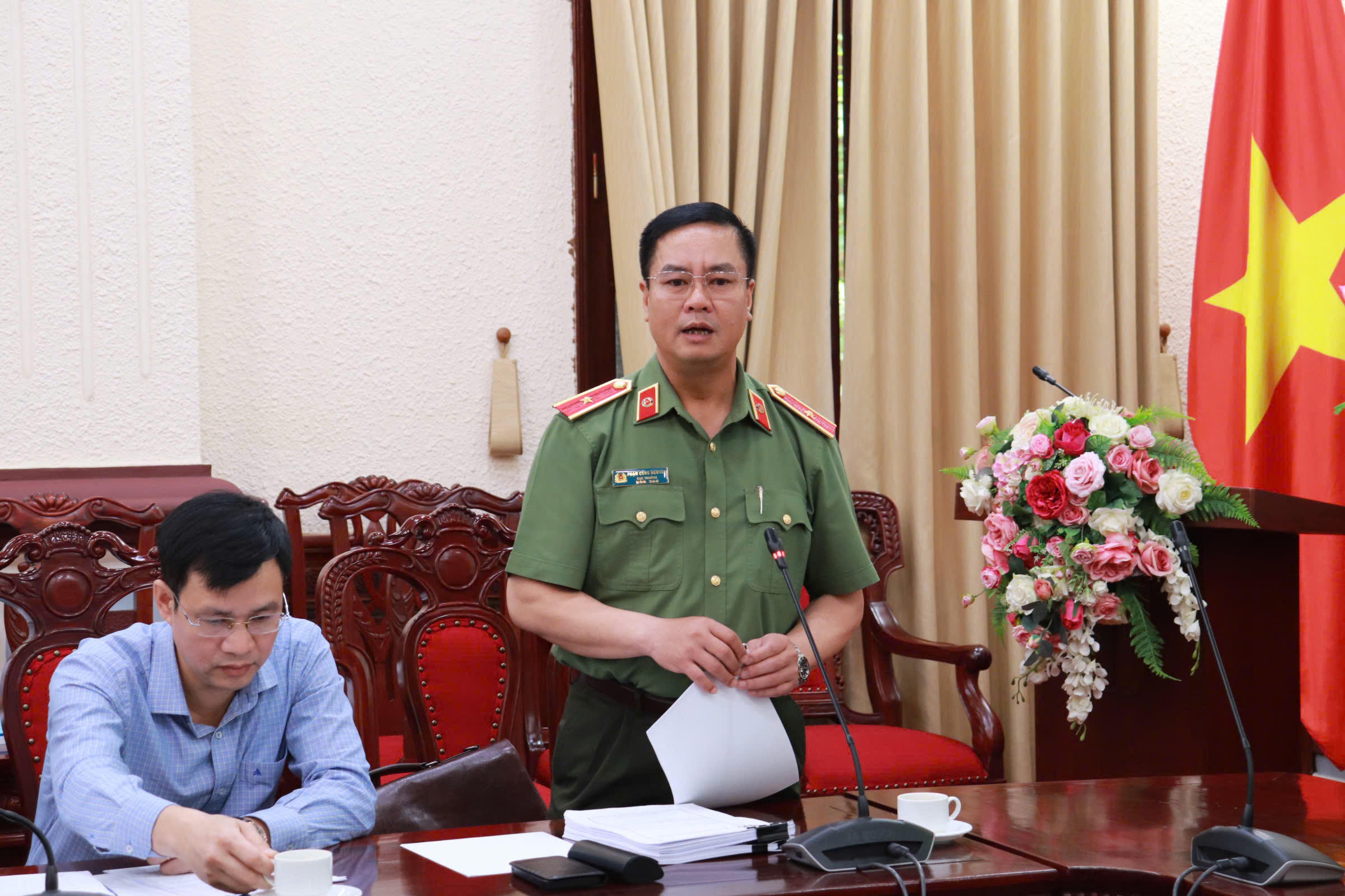 Thiếu tướng Phạm Công Nguyên, Cục trưởng Cục Pháp chế và Cải cách hành chính, tư pháp (V03), Bộ Công an phát biểu tại phiên thẩm định. |