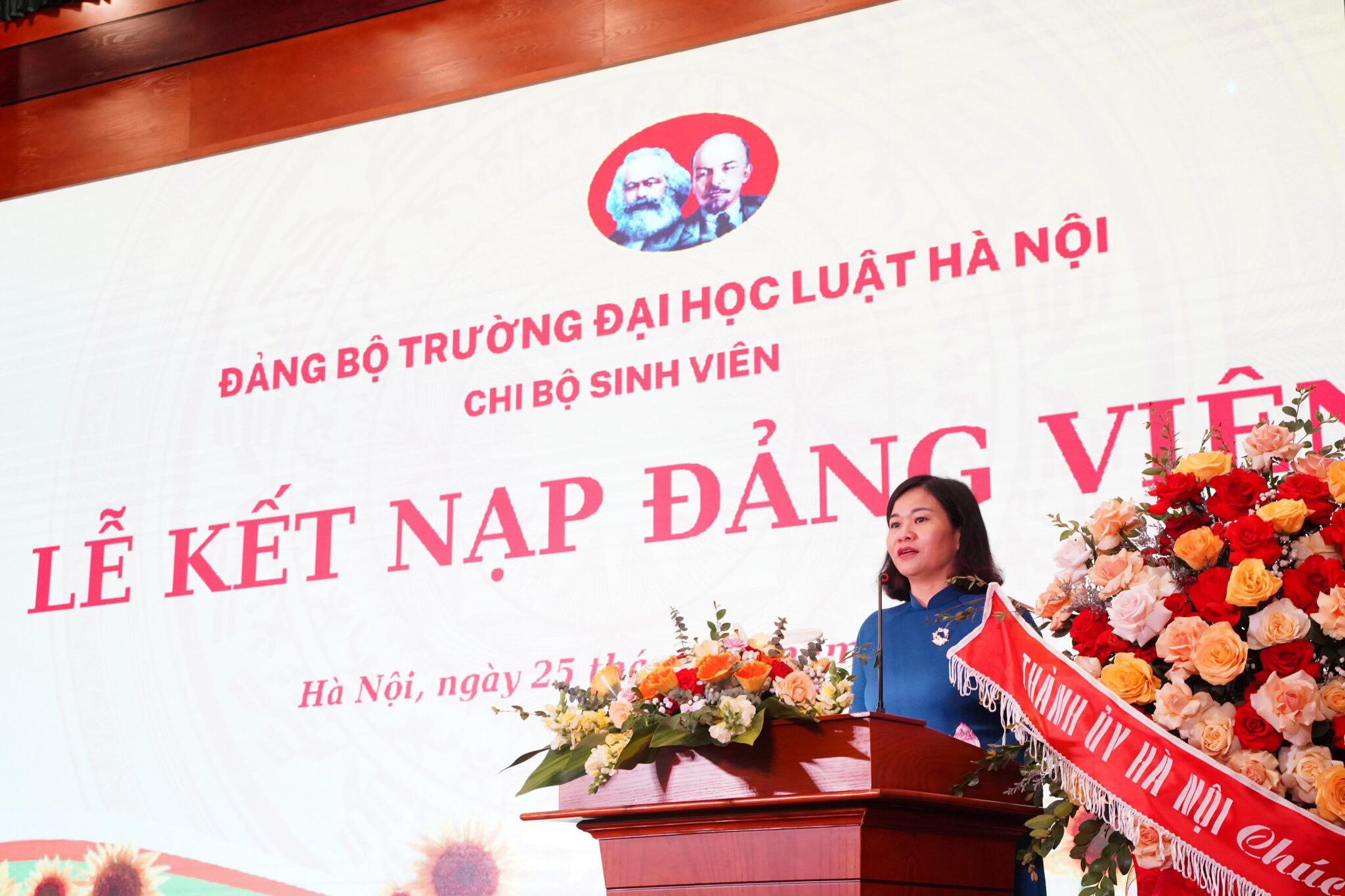 Đối với các đồng chí Đảng viên mới, đồng chí Nguyễn Thị Tuyến hy vọng rằng với trí tuệ được đào tạo tại Trường Đại học Luật Hà Nội, với tinh thần, sức trẻ, sức sáng tạo của Thanh niên, khi ra trường, các đồng chí đảng viên mới sẽ trở thành những công dân tốt, cán bộ tốt của Thủ đô và các địa phương khác trên cả nước; là các cán bộ Tư pháp với tinh thần “phụng công thủ pháp, chí công vô tư” như Chủ tịch Hồ Chí Minh đã căn dặn; đúng với triết lý đào tạo mà Nhà trường đã tuyên bố: “Tạo nên những con người ham học hỏi, biết làm việc, sẵn sàng bảo vệ công lý, phục vụ nhân dân và phụng sự tổ quốc”.