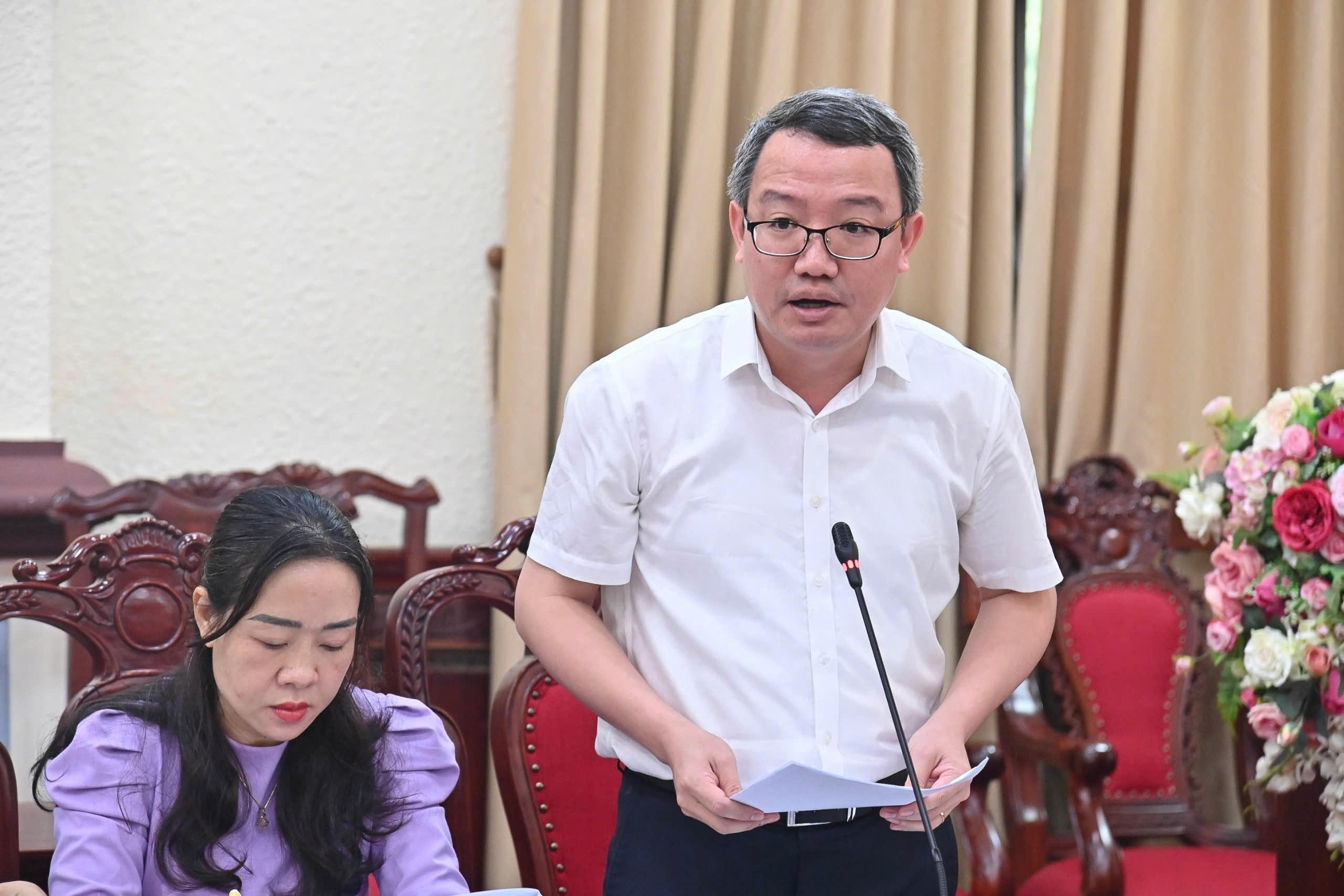 Cục trưởng Cục Kiểm tra VBQPPL Hồ Quang Huy báo cáo tại cuộc họp. |