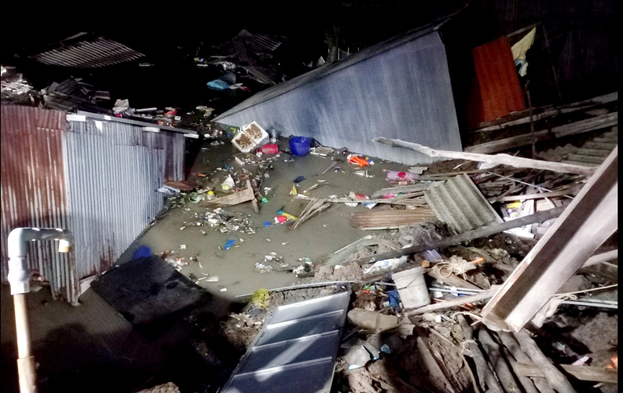 Sạt lở xảy ra lúc nửa đêm, khi mọi người đang ngủ, nhưng nhờ phát hiện kịp nên bà con gọi nhau tháo chạy, vì vậy không thiệt hại về người.