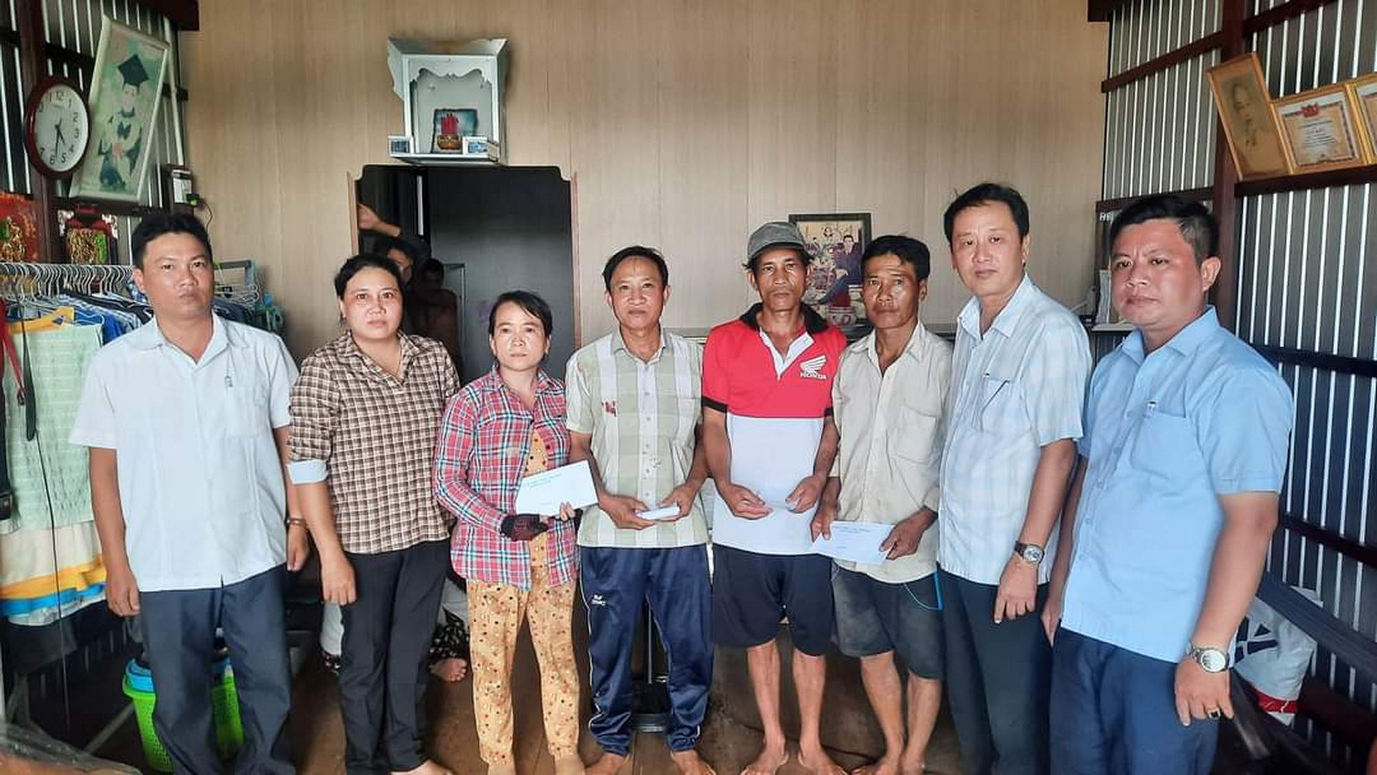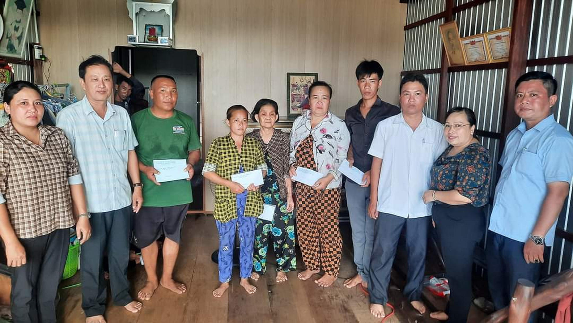 Đại diện lãnh đạo UBND thị trấn Rạch Gốc đến thăm hỏi và hỗ trợ tiền cho 9 hộ nhà dân bị sạt lở. |