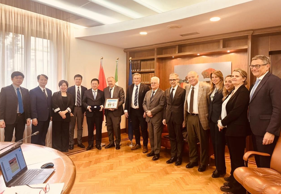 Cũng trong khuôn khổ chuyến làm việc, đoàn công tác đã đến thăm, làm việc với Đại sứ quán Việt Nam tại Italia, trao đổi thông tin chung về tình hình và kết quả hợp tác giữa hai nước nói chung và trong lĩnh vực Pháp luật và Tư pháp.