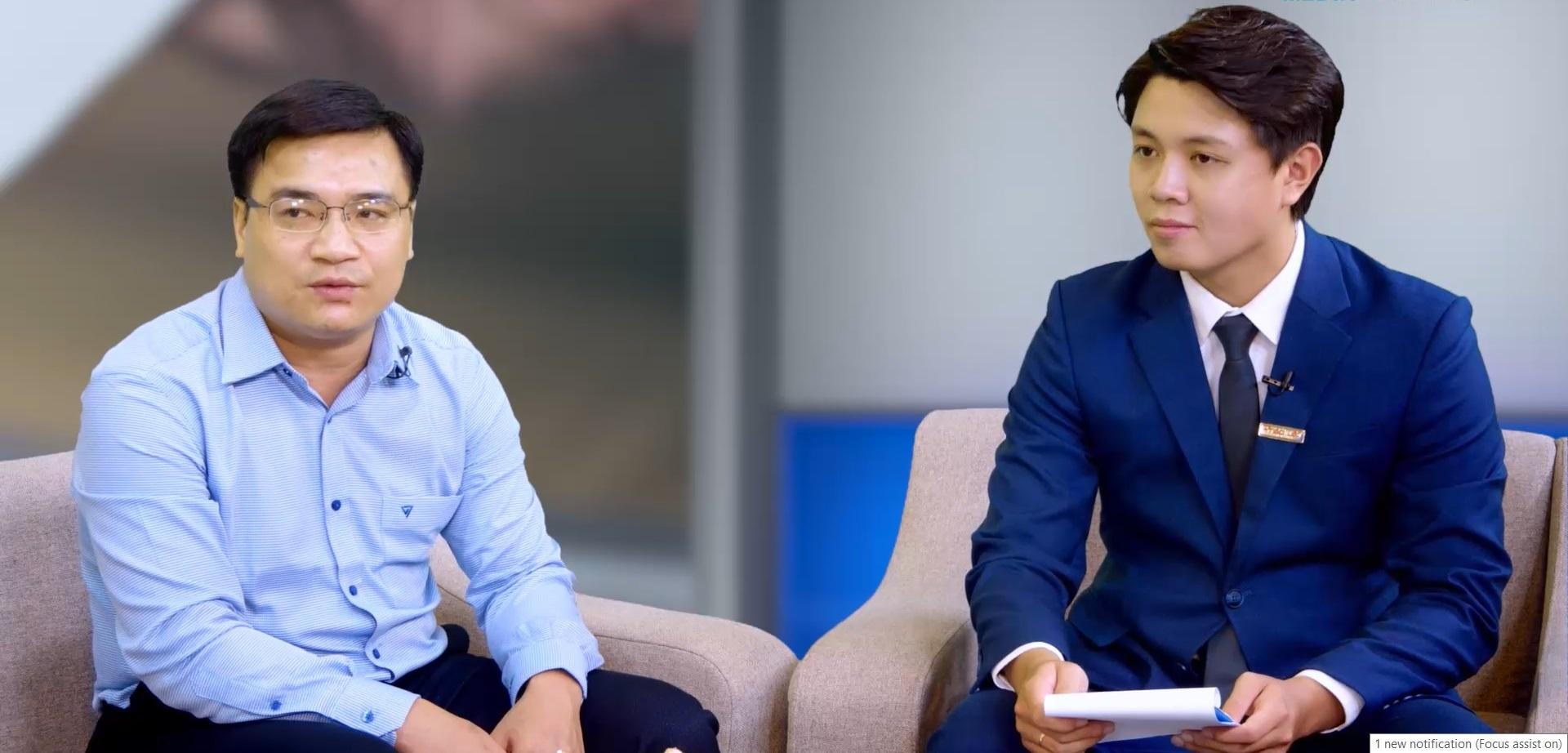 Ông Lê Tuấn Phong và MC trong buổi tọa đàm. |