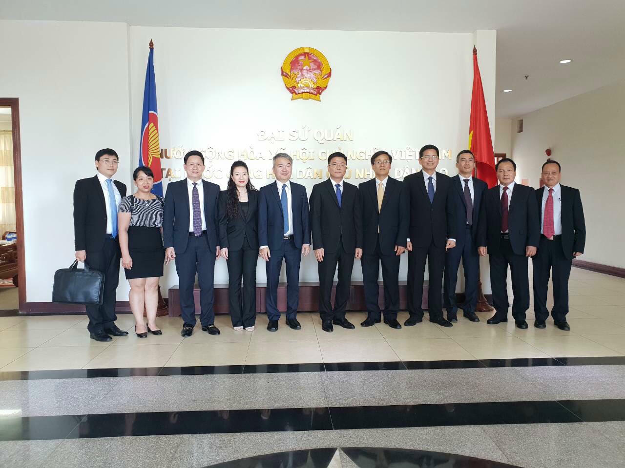 Vào cuối giờ chiều cùng ngày, Bộ trưởng Lê Thành Long cùng đoàn công tác của Bộ Tư pháp cũng đã đến thăm Đại sứ quán Việt Nam tại Thủ đô Viêng-Chăn.