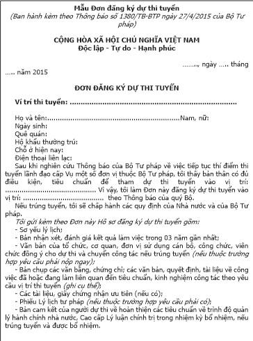 Để thông tin được công khai, minh bạch, PLVN xin được đăng tải toàn văn Thông báo này và mẫu Đơn đăng ký dự thi tuyển.