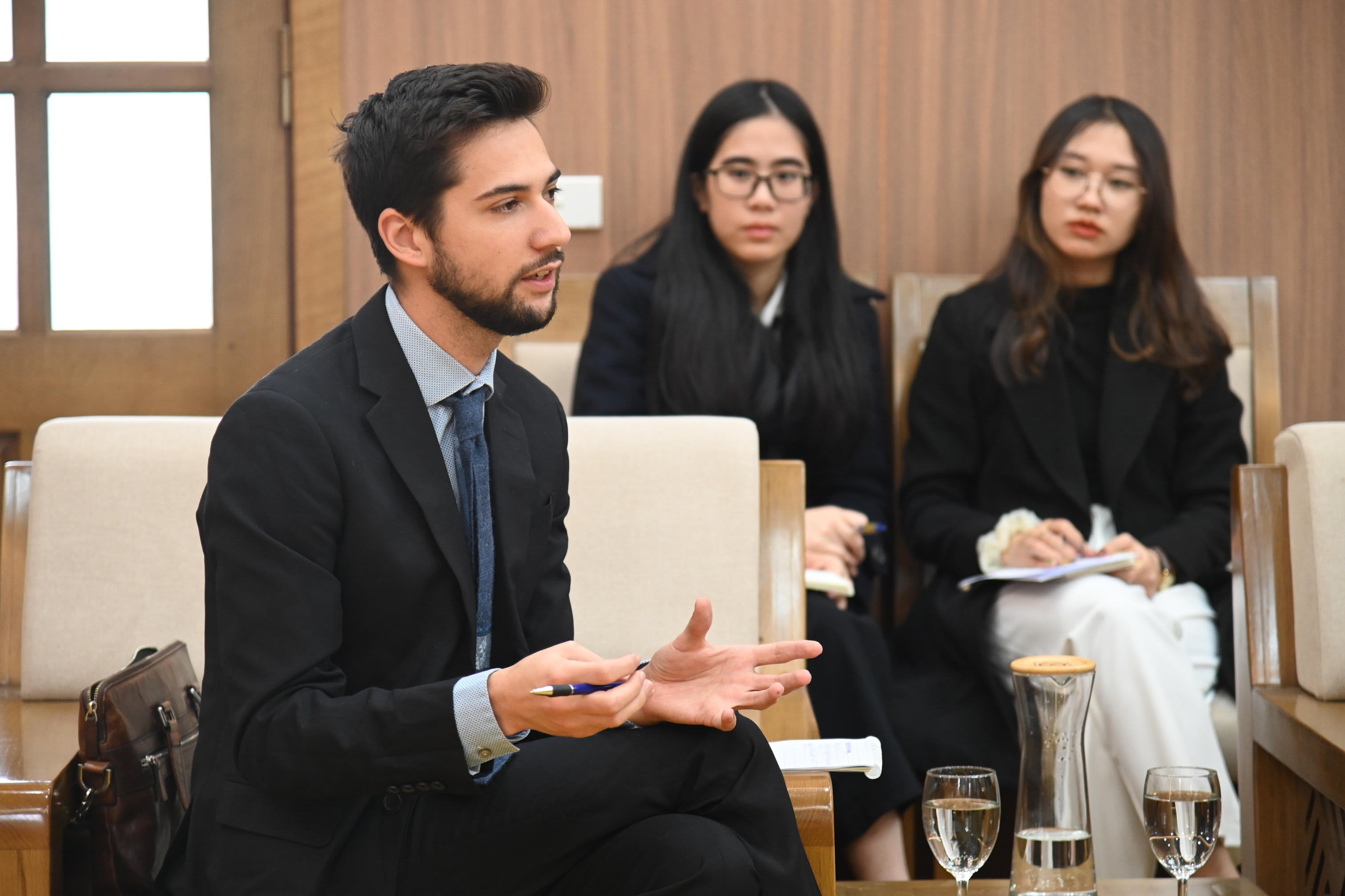Trong chuyến thăm lần này, Giáo sư và các sinh viên đã phối hợp với Trường Đại học Luật Hà Nội tổ chức 03 Toạ đàm chia sẻ kinh nghiệm về một số lĩnh vực mà hai Bên cùng quan tâm như pháp luật về môi trường, y tế công cộng và phòng chống dịch bệnh. Qua đó, Thứ trưởng hy vọng hai Bên tiếp tục trao đổi về khả năng thiết lập quan hệ hợp tác thông qua việc ký kết thỏa thuận hợp tác khung để tiến tới thực hiện các hoạt động hợp tác cụ thể, thiết thực như: các hoạt động trao đổi sinh viên, giảng viên; tổ chức hội thảo khoa học quốc.