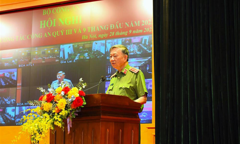 (PLVN)- Ngày 28/9/2023, tại Hà Nội, Đại tướng Tô Lâm, Ủy viên Bộ Chính trị, Bí thư Đảng ủy Công an Trung ương, Bộ trưởng Bộ Công an chủ trì Hội nghị sơ kết công tác công an Quý III và 9 tháng đầu năm 2023 qua hệ thống truyền hình trực tuyến đến Công an các địa phương.