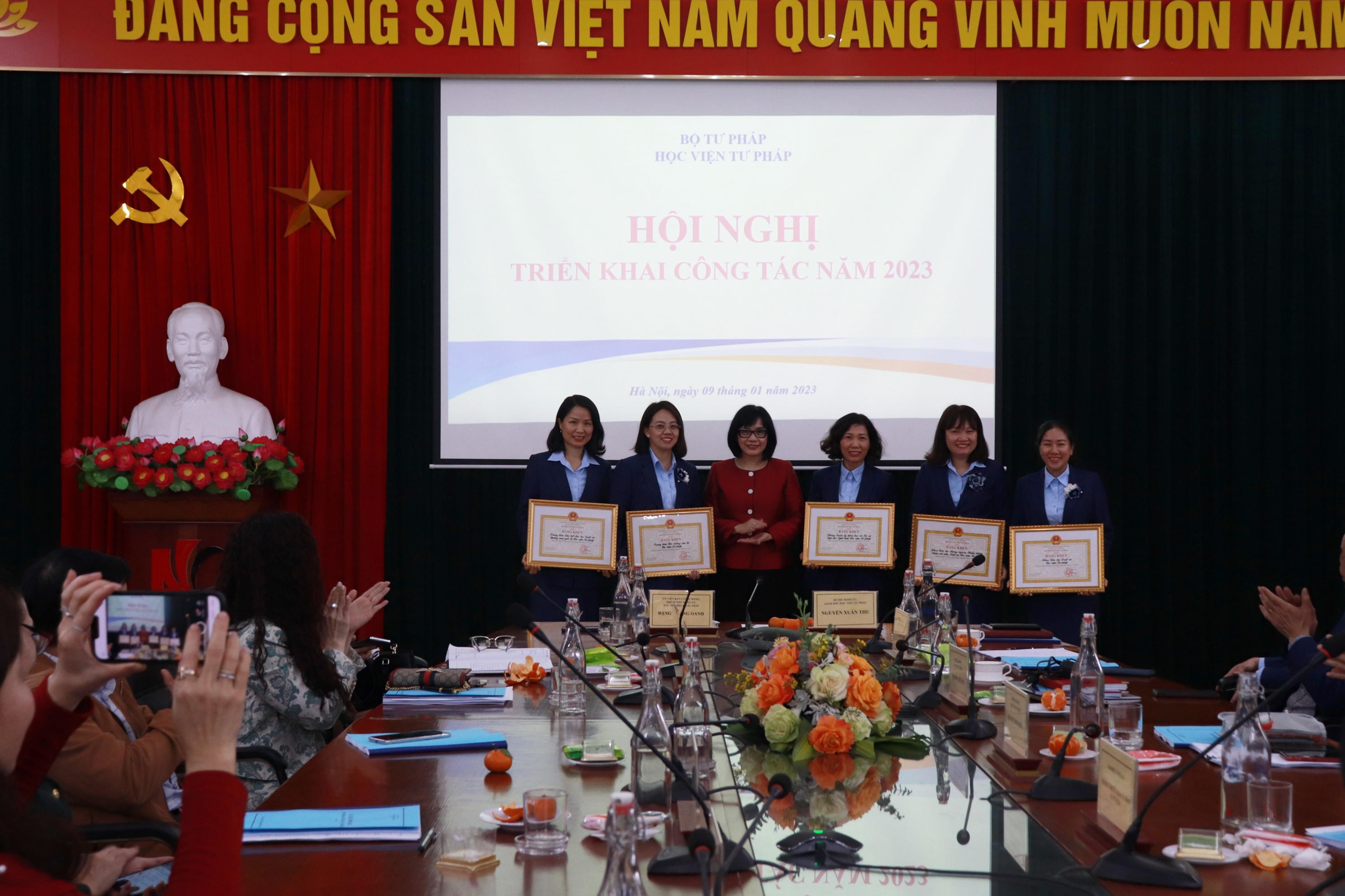 Nhân dịp này, Hội nghị đã trao tặng các danh hiệu thi đua khen thưởng cho tập thể và cá nhân có thành tích xuất sắc thuộc Học viện Tư pháp.