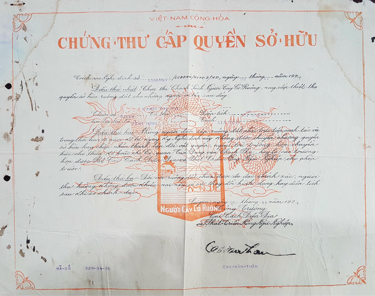“Chứng thư cấp quyền sở hữu”, một trong những giấy tờ liên quan đến khu đất 9.793m2do ông Đỗ Đức Trung giao cho Công ty Đại Phúc. |