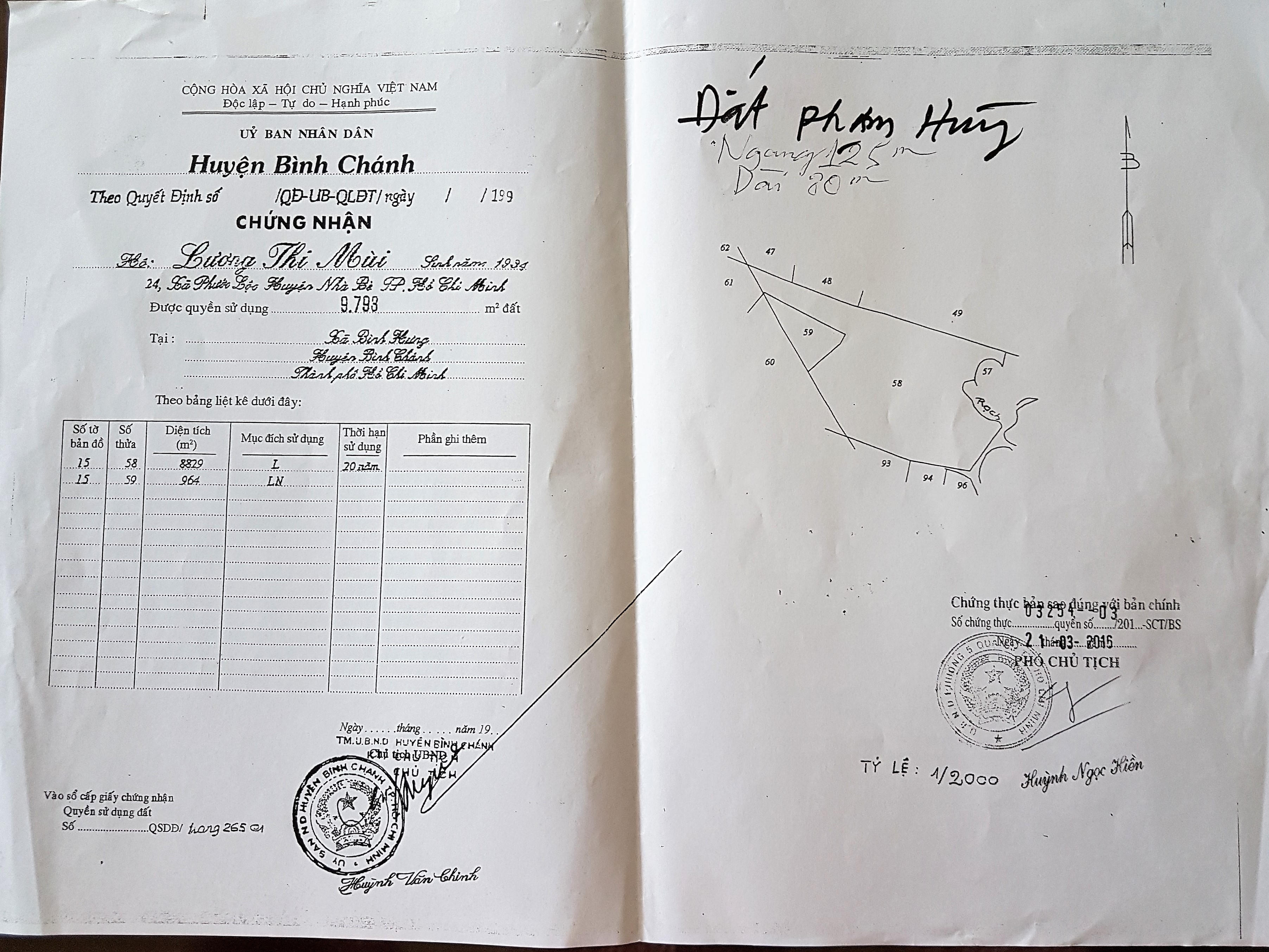 Thông qua người quen, sư cô gặp một phụ nữ tên Thủy ở đường Lý Thái Tổ, quận10, TP.HCM vào tháng 9/2016. Bà Thủy giới thiệu có khu đất tại Rạch Bà Tánh (thuộc thửa 58 và 59, tờ bản số 15) của ông Trần Văn Vân đã được cấp sổ đỏ tức Giấy chứng nhận quyền sử dụng đất (GCNQSDĐ), sẽ bán giá “hữu nghị” cho nhà chùa để xây bệnh viện từ thiện. Kèm theo giới thiệu là bản photo GCNQSDĐ số 530/QSDĐ đứng tên bà Lương Thị Mùi (mẹ ông Vân) được UBND huyện Bình Chánh cấp ngày 27/11/1998 với 9.793m2.