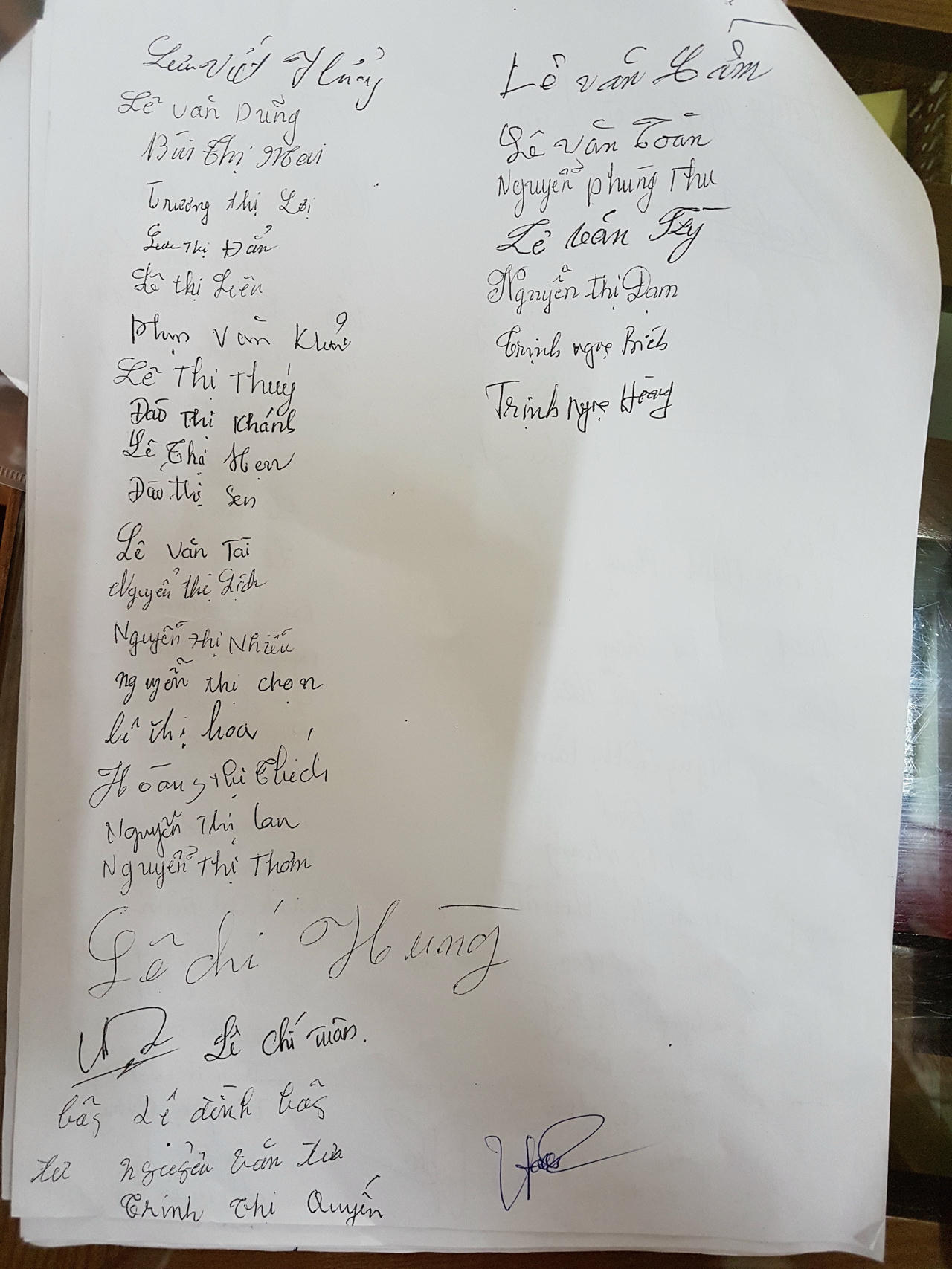 | Chỉ lèo tèo vài hộ dân ký tên nhưng ông Lê Chí Tuân khẳng định là ông đại diện cho cán bộ và nhân dân thôn Cao Khánh |