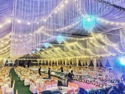 Trước đó, dân mạng cũng không khỏi choáng ngợp bởi hình ảnh không gian tiệc cưới xa hoa trong ngày vui của một cặp đôi ở Vĩnh Phúc. Theo đó, rạp cưới “khủng” trị giá hơn 800 triệu được trang trí như thiên đường là của cặp đôi chú rể SN 1998, cô dâu SN 2000 ở Tề Lỗ.
