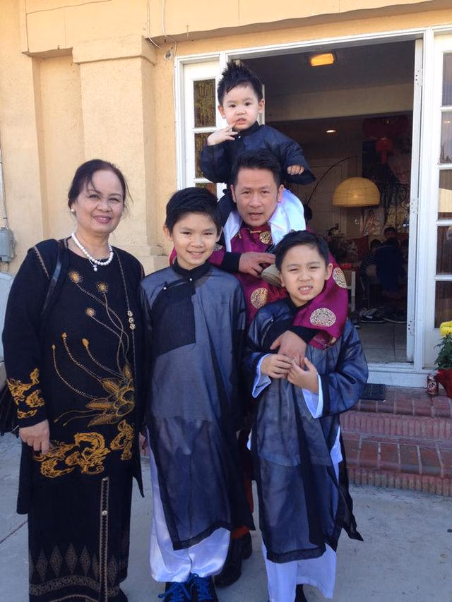 Bà Lưu Nga cùng 3 cậu con trai của Bằng Kiều: Beckham, Colin và cậu út Kenzi.