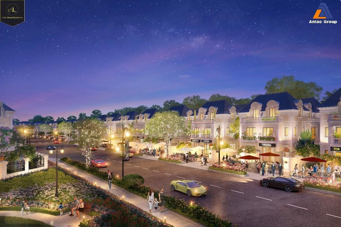 Không gian shophouse sầm uất tại KĐT Anlac Green Symphony. |