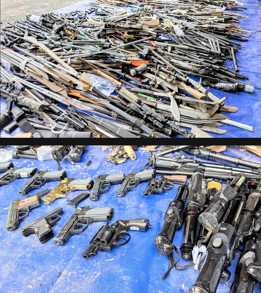 Có 1.580 vũ khí thô sơ, công cụ hỗ trợ gồm: Súng, đèn pin tia lửa điện, nòng súng bằng kim loại, dao, mã tấu, giáo, mác, chích điện, dùi cui các loại, khóa còng số 8... và 8.362 gram đạn bi sắt, chì được tiêu hủy theo đúng quy trình, bằng cách sử dụng máy công nghiệp dập nát và máy cắt kim loại để cắt nhỏ nhằm làm mất tính năng, tác dụng của số công cụ hỗ trợ, vũ khí thô sơ; đồng thời đảm bảo an toàn, hạn chế ảnh hưởng đến môi trường và theo đúng quy định.