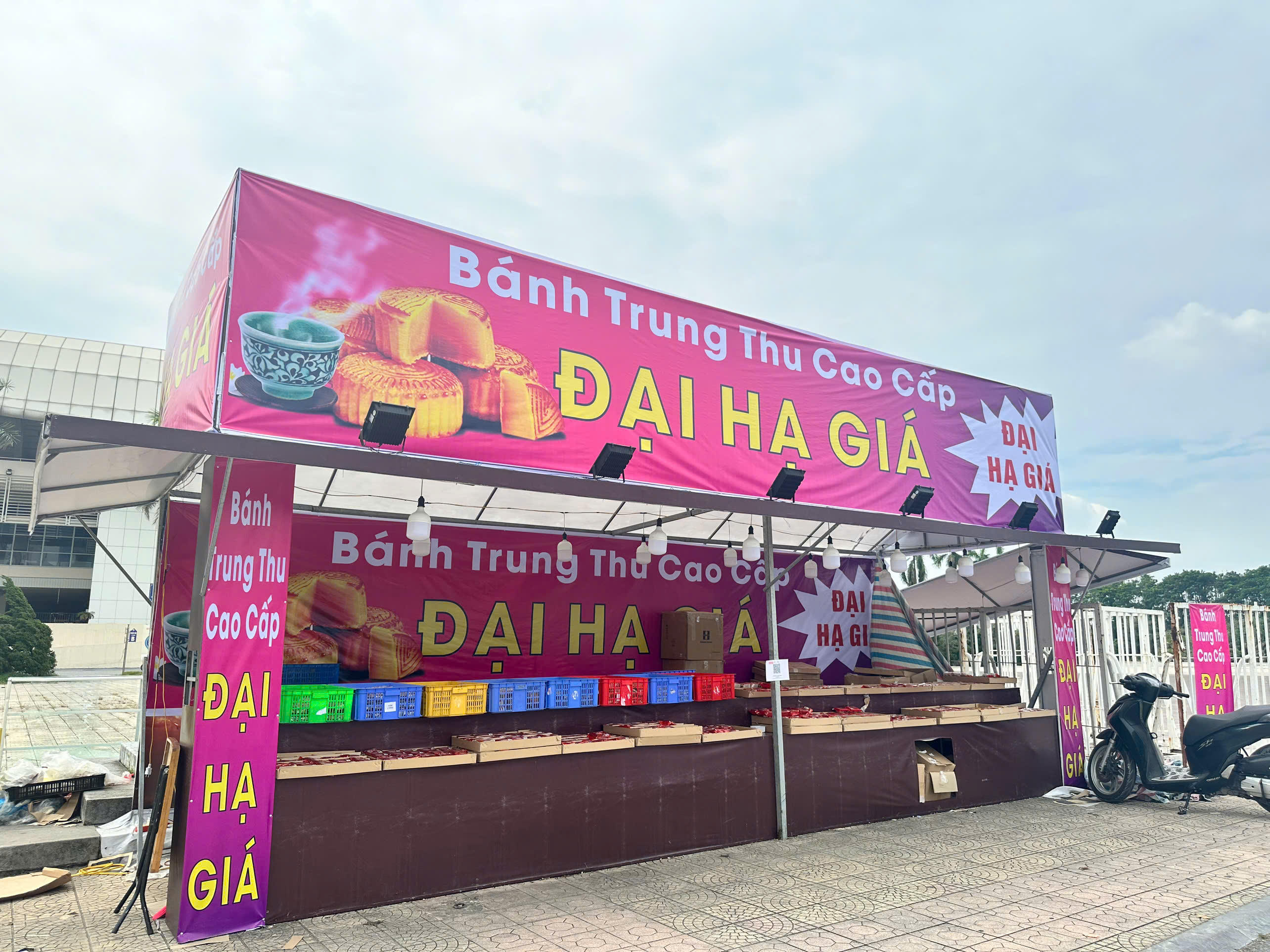 Đã qua Tết Trung thu 2 ngày, nhưng nhiều ki-ốt bán bánh trung thu trên các tuyến phố ở Hà Nội như Lê Quang Đạo (quận Nam Từ Liêm), Lê Đức Thọ, Nguyễn Hoàng (quận Cầu Giấy)... vẫn đang "hoạt động hết công suất" với số lượng bánh tồn kho còn rất nhiều. Để kích cầu tiêu dùng, nhiều ki-ốt mạnh tay giảm giá "sập sàn". Những tấm biển "đại hạ giá" được treo với cỡ chữ lớn, màu sắc nổi bật, song sức mua vẫn vô cùng ảm đạm.