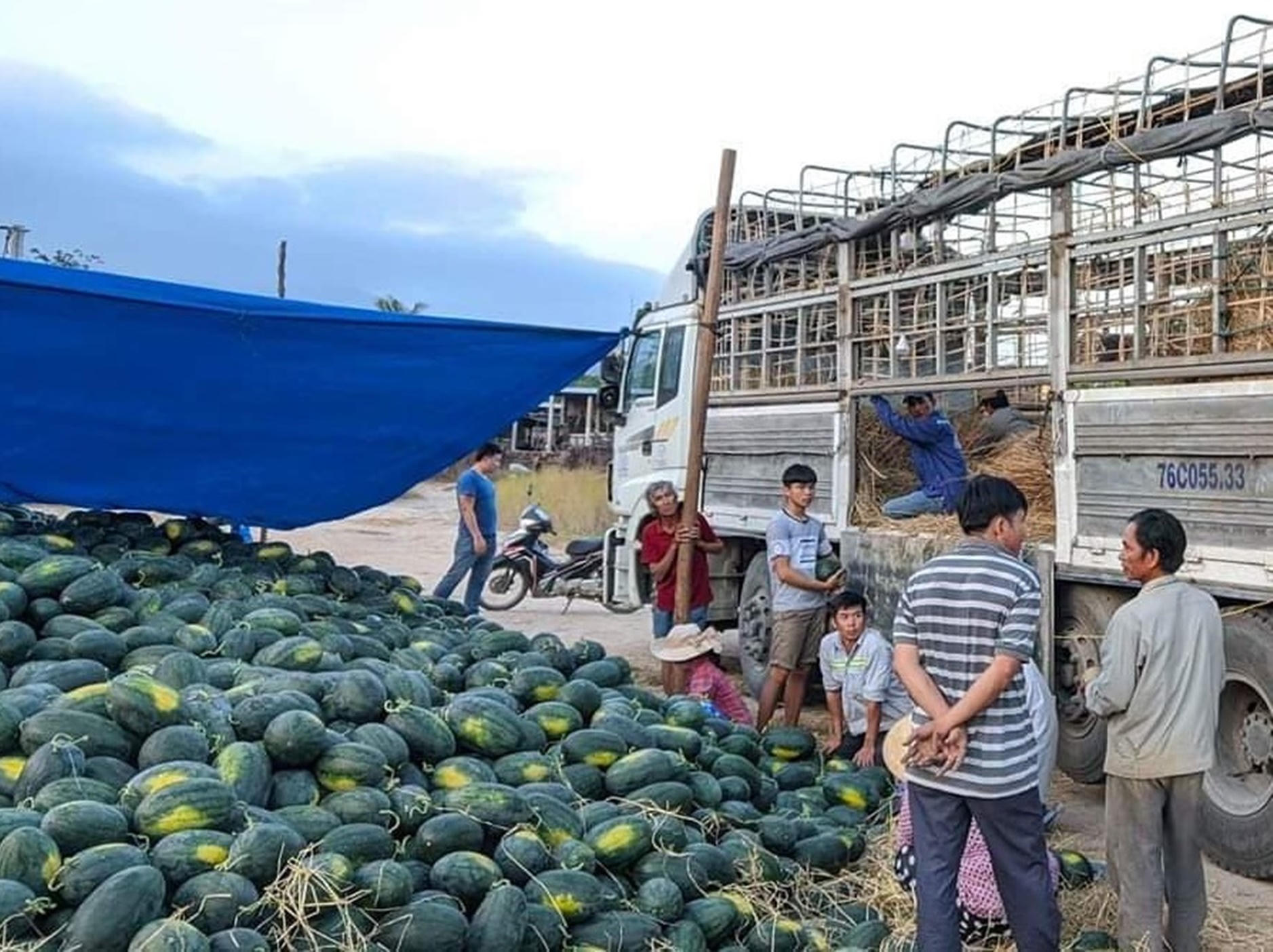 Trước đó, vào rạng sáng 28/2, sau khi được tiểu thương là bà Phạm Thị Mỹ Ảnh (ngụ xã Hoài Tân, huyện Hoài Nhơn, tỉnh Bình Định) thuê, 2 tài xế là anh Mai Đức Tấn (ngụ xã Mỹ Chánh, huyện Phù Mỹ, tỉnh Bình Định) và anh Nguyễn Hoàng Tú (ngụ xã Mỹ Tài, huyện Phù Mỹ) điều khiển 2 xe ô tô tải đến ruộng dưa hấu của nông dân xã Tây Giang để bốc dưa đưa đi tiêu thụ.