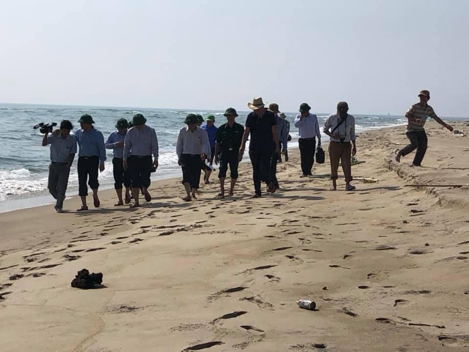 (PLVN) - Ngày 5/4, Tổng cục Phòng chống Thiên tai, Bộ NN-PTNT, lãnh đạo UBND tỉnh Quảng Nam và các ngành chức năng kiểm tra cồn cát nổi lên bất thường tại khu vực biển Cửa Đại (Hội An, Quảng Nam), cách bờ biển khoảng 2km.
