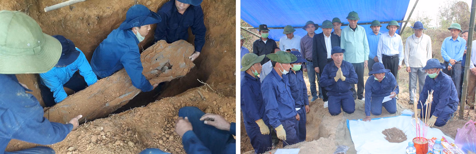“Các hài cốt thường được an táng theo hàng ngang, đầu hướng vào núi, chân đạp xuống suối. Các chuyến đi trước, anh em “xăm” đất, phát hiện, cất bốc được 7 bác. Nhiều lần anh em xăm đi xăm lại không có kết quả nhưng vị già bản khẳng định có 8 người an táng ở khu vực này, thỉnh thoảng vẫn mơ thấy một bộ đội Việt Nam về xin gạo, xin muối, chúng tôi càng củng cố thông tin còn một phần mộ chưa được tìm thấy nên quyết định tiếp tục tìm kiếm.