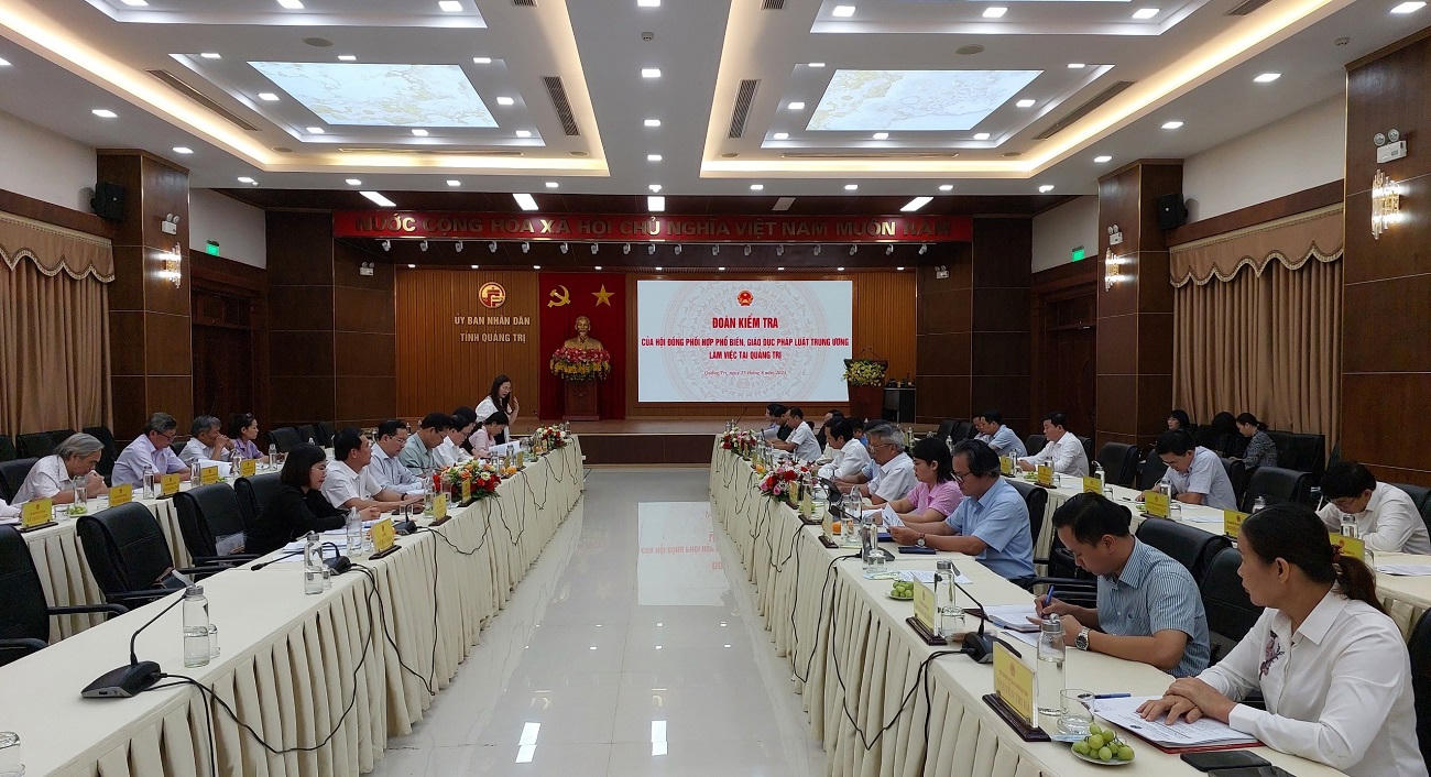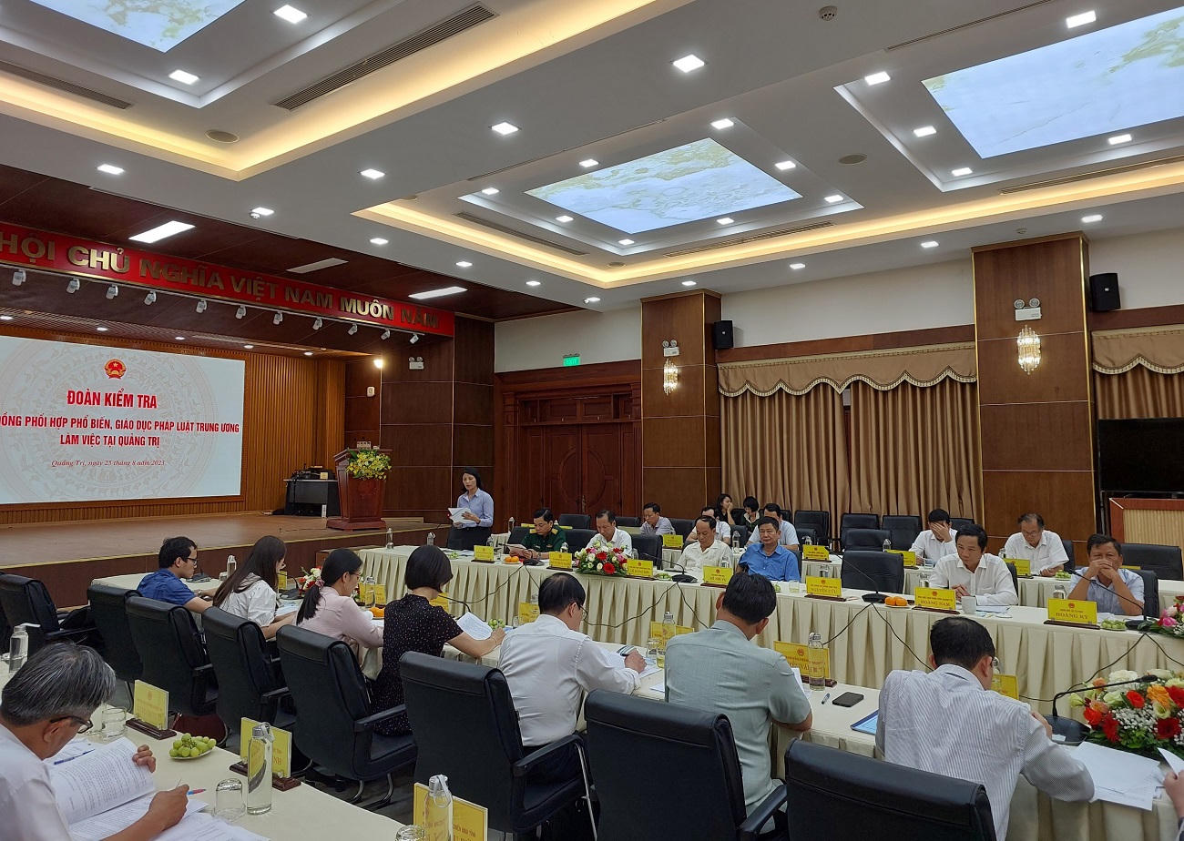 (PLVN) - Hôm nay, 25/8, Đoàn kiểm tra của Hội đồng phối hợp phổ biến, giáo dục pháp luật (PBGDPL) trung ương làm việc với Hội đồng phối hợp PBGDPL tỉnh Quảng Trị.