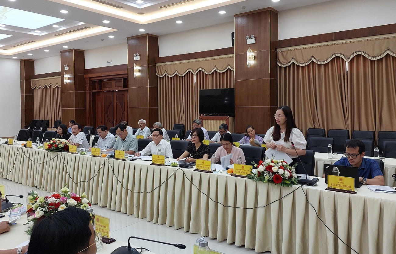 Đại diện các sở, ngành, đại biểu các địa phương phát biểu, trao đổi, thảo luận tại buổi làm việc. |