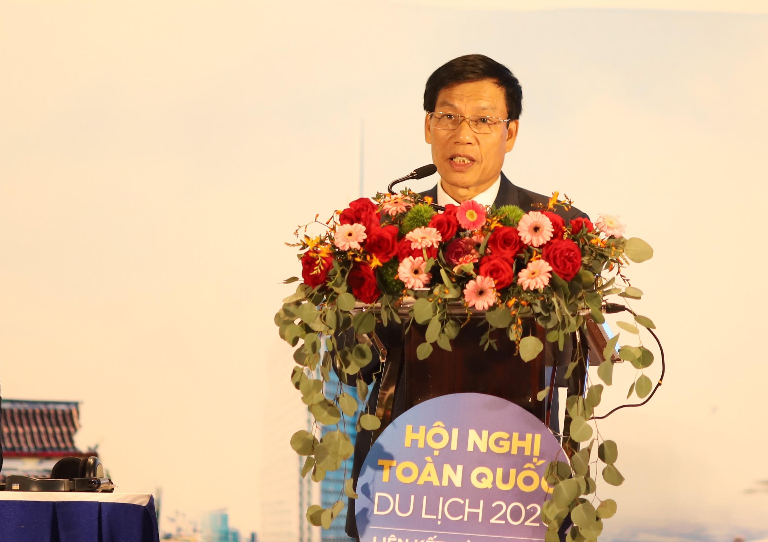 "Với cách nhìn nhận đó, trong khuôn khổ Hội nghị này Bộ VHTTDL mong tiếp tục nhận được sự quan tâm chỉ đạo của lãnh đạo Chính phủ, sự phối hợp chặt chẽ của các bộ, ngành, địa phương và các doanh nghiệp về các vấn đề chính của ngành du lịch như: Vấn đề đầu tư phát triển sản phẩm; Vấn đề nâng cao năng lực cạnh tranh cho ngành du lịch; Vấn đề cơ cấu lại thị trường du lịch; Vấn đề liên kết vùng, hợp tác công-tư và vấn đề chuyển đổi số trong phát triển du lịch.