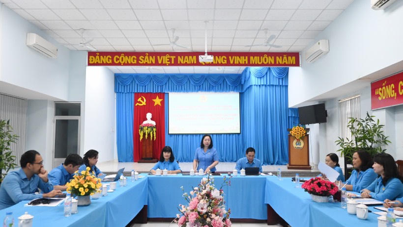 Phó Chủ tịch Thường trực Tổng LĐLĐ Việt Nam Thái Thu Xương làm việc với LĐLĐ TP Mỹ Tho (Tiền Giang). Ảnh: Thành Nhân |