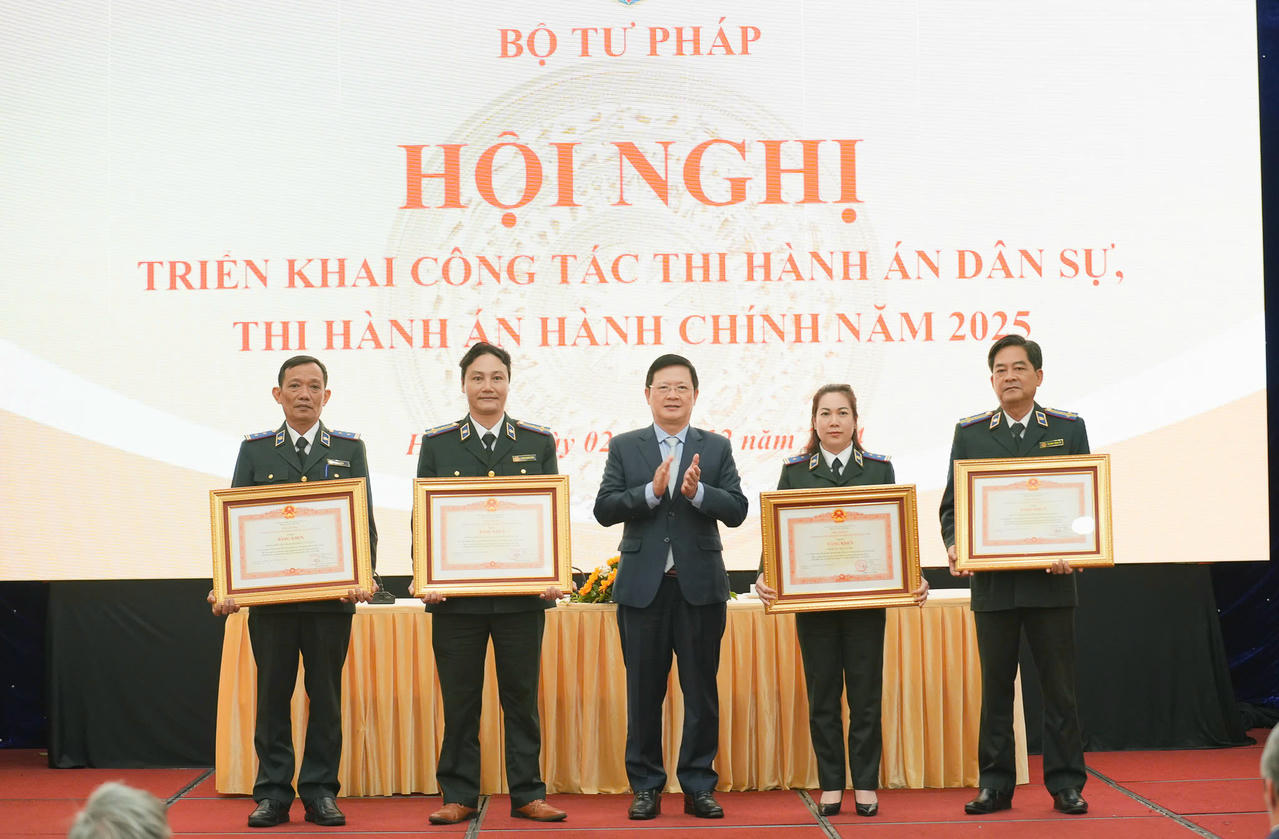 Thứ trưởng Bộ Tư pháp Mai Lương Khôi trao Bằng khen cho các cá nhân có thành tích xuất sắc trong công tác THADS |