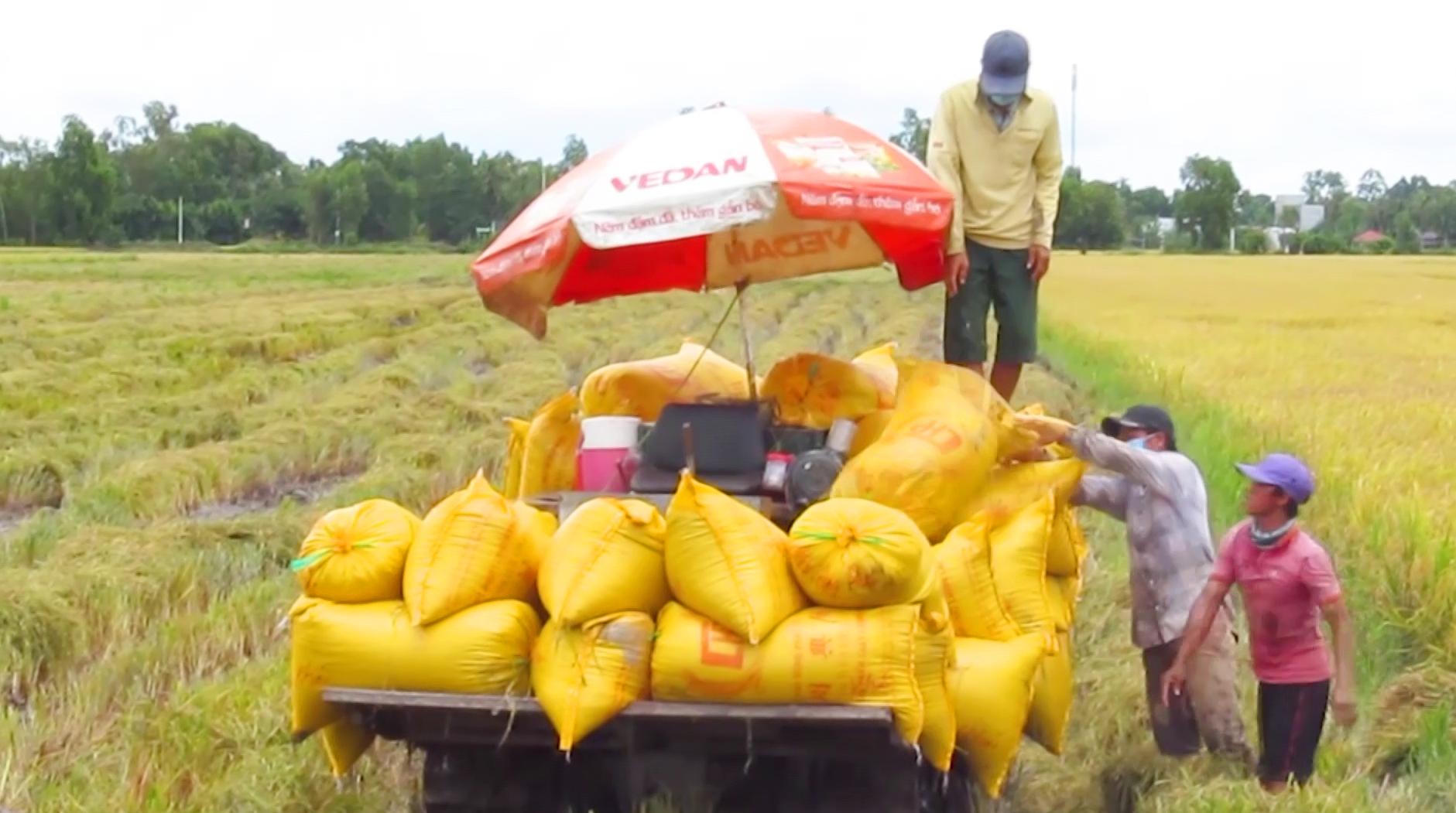 Do đi lại khó khăn vì dịch bênh, nên thương lái đi mua khiến giá lúa giảm. |