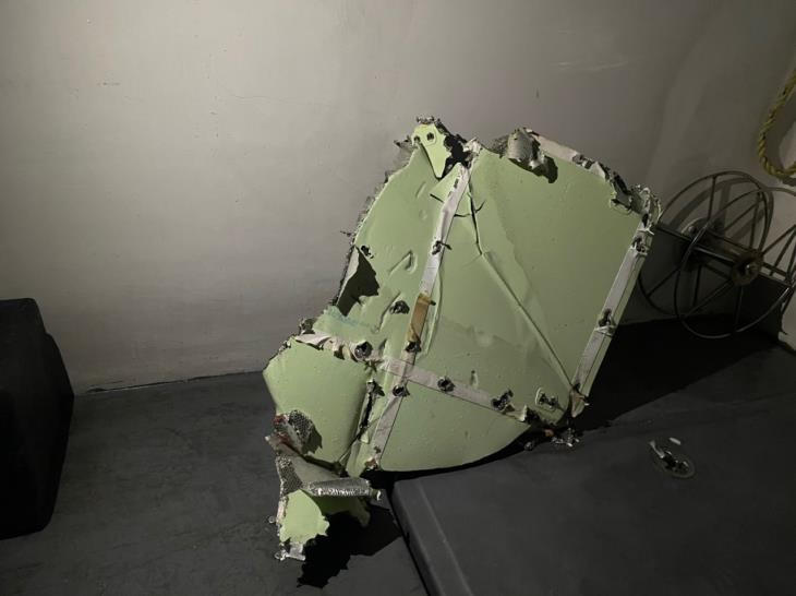 Mảnh vỡ nghi là của máy bay Bell-505 do BĐBP Quảng Ninh trục vớt được (Ảnh: BĐBP Quảng Ninh cung cấp) |