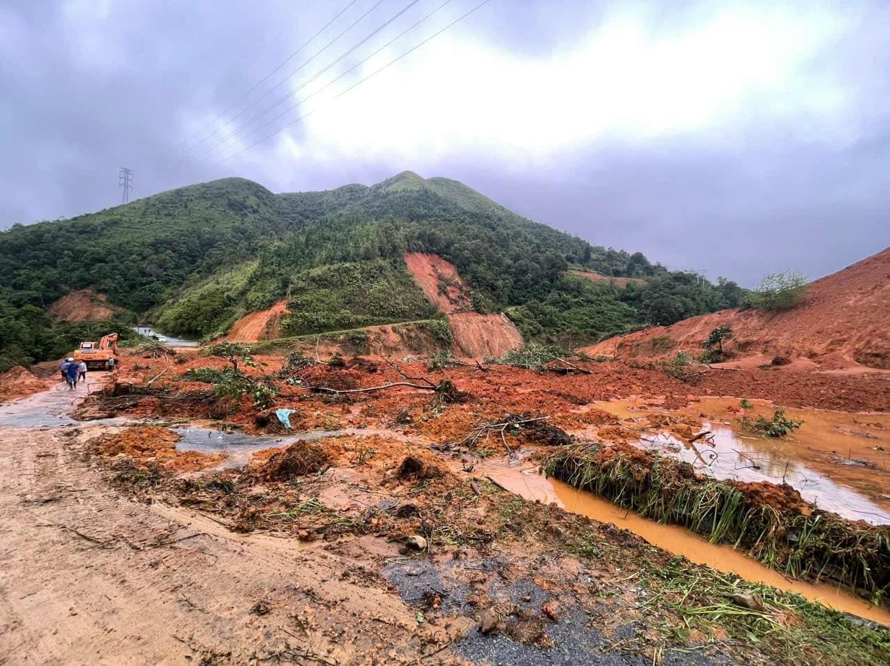 Khu vực xã Ca Thành các tuyến đường bị sạt lở nên việc di chuyển của người và các phương tiện hiện tại rất khó khăn. (Ảnh: Lê Hanh) |