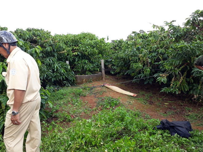Chiếc giếng nơi phát hiện thi thể của nghi can này cách nơi xảy ra vụ án khoảng gần 1km. Giếng được đào khá sâu và nằm khuất trong một rẫy cà phê của người dân. Hiện toàn bộ hiện trường đã được Công tỉnh Gia Lai phong tỏa để phục vụ công tác điều tra.