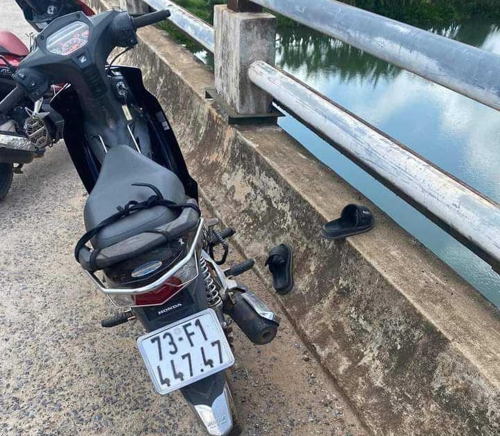 Cụ thể vào khoảng 13h30 trưa ngày 19/8, người dân địa phương phát hiện trên cầu sông Dinh có một chiếc xe gắn máy và đôi dép nhưng không có người.