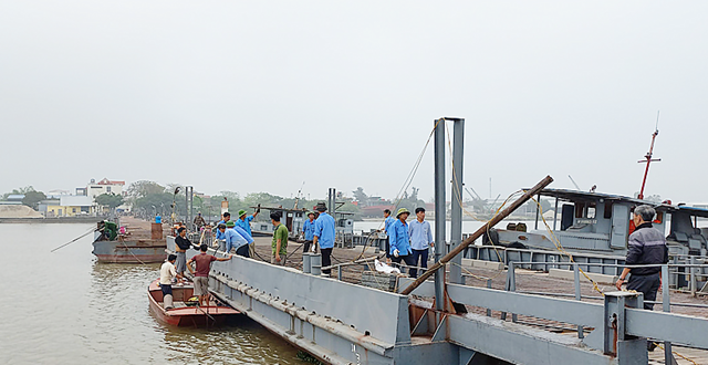 Cầu phao Ninh Cường được kết nối trở lại sau sự cố. |