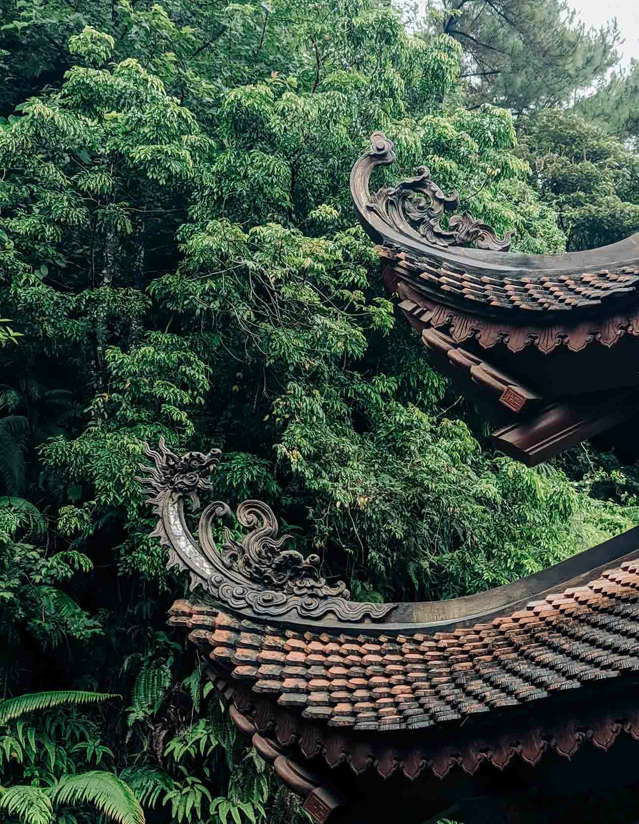 Ngôi chùa ẩn mình trong rừng thông, tạo cảm giác yên bình, thanh tịnh. Ảnh: Vương Lộc