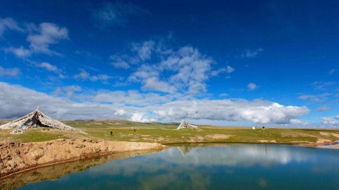 Tiếp đó, cách khu vực này 2 ngày di chuyển mới có thể đến các khu hồ Zaxiqiwa, nơi được cho là cội nguồn linh hồn của Mê Kông. Những hồ nước xanh ngắt hiện lên từ khu đầm lầy, bao quanh là những triền đất ẩm ướt, những trảng cỏ và thảm hoa dại trải dài. Ở độ cao này, không khí quá mỏng khiến người ta có cảm giác thế giới như đang ngưng đọng, đến mức có thể nghe thấy tiếng cánh chim đại bàng ngay trên đầu. Xa xa phía chân trời thấp thoáng những căn lều của những người du mục, để đến đó đi bộ là cách duy nhất vì mặt đất quá lún xe không thể đi qua được.